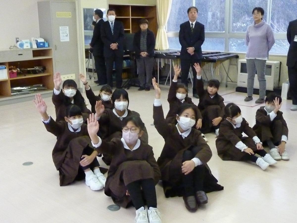 今朝は児童集会、内容は①委員会発表、②今月の歌でした。①委員会発表では、運営委員会から1月の振り返りと2月の目標、今月の歌のお話でした。今月の学習目標は「授業の準備をしよう」、生活目標は「手洗いをその場でしよう」です。みんなで守って、よりよい学校生活になればいいなと思いながら聞いていました。②今月の歌は「ありがとうの花」。20日に予定している生活科・総合的な学習発表会の中で、全校で参観に来られた地域・保護者の皆さんに届ける歌として歌います。そのために、5年生が振付を考えて練習に取り組みました。本番では、「感謝の気持ち」が届けられるように、今後も練習します。本番が楽しみです!