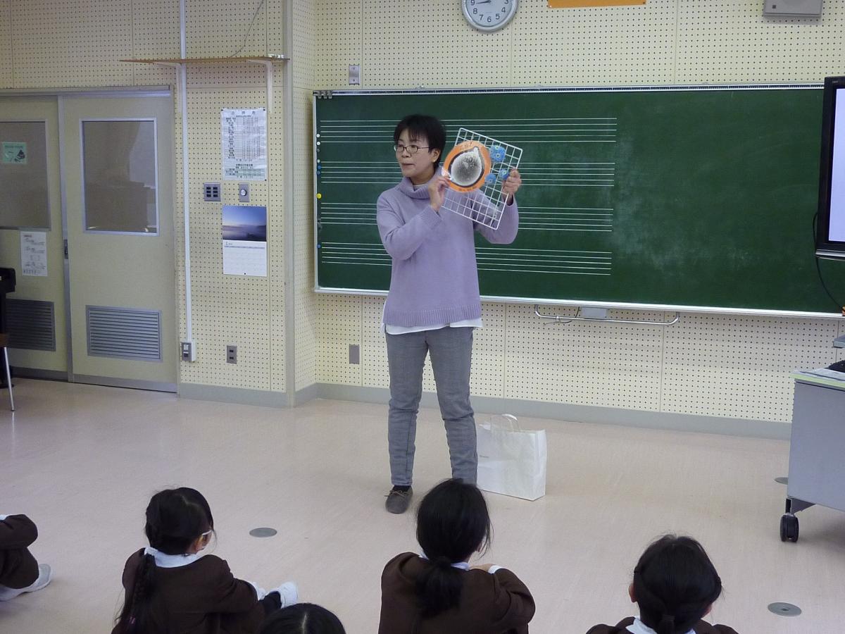 1・2年生は「ちきゅう」の読み聞かせでした。45億4,000万年前に生まれた、わたしたちの地球。人類が誕生したのは、つい最近のことだけど、それまでにどんなことがあったのか、<ちきゅう>本人が語ります。大陸の移動、隕石の衝突、生き物の誕生、そして、人間との関係。地球にまつわるさまざまなテーマを、キュートな絵とやさしい語りでテンポ良く紹介していく絵本でした。