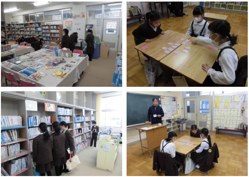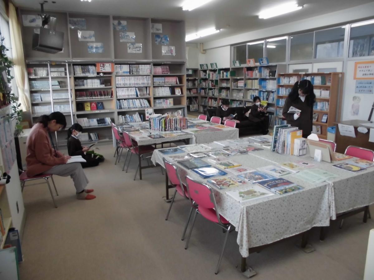 5限目も見に行くと、1・2年生は生活科、今週木曜日に予定している、4月に本校に入学する年長さんの「お招き会」の内容についてみんなで考えていました。年長さんにとって楽しい時間になるといいですね。3年生が外国語活動、ALTの先生と一緒にたくさん発話する姿が見られました、花丸◎!5年生は理科、電磁石の学習です。「電磁石を強くするには?」について考えていました。互いの考えを出し合い、確認し合う姿が見られました、花丸◎!図書室前には、節分の本がずらり、暦の上ではもうすぐ春がやってきます。