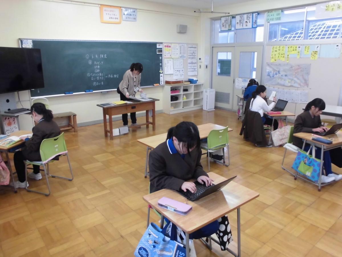 1限目の様子を見に行くと、3年生は国語、明日行うオンライン交流学習の発表練習をしていました。明日の交流が楽しみです、花丸◎!5年生も国語、単元は「自然環境を守るために」。グラフや表を用いて考えを書く学習です。新しいクロームブックを使って、ワークシートに自分の考えを書きすすめる姿が見られました、花丸◎!