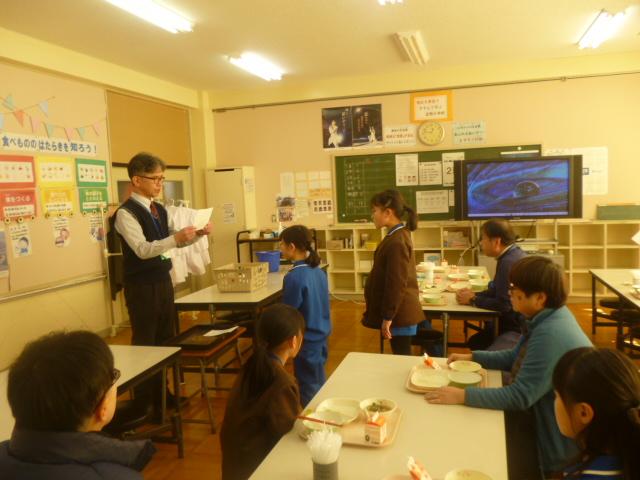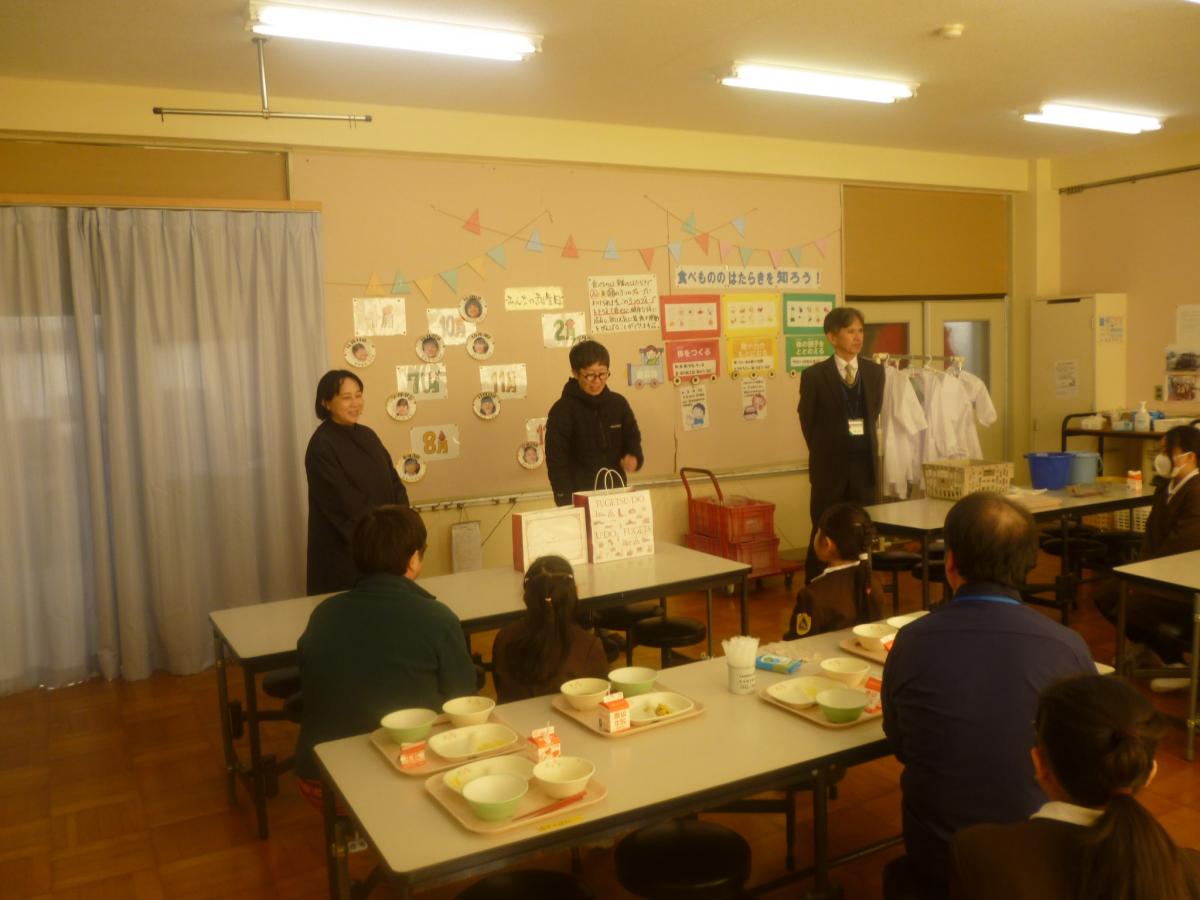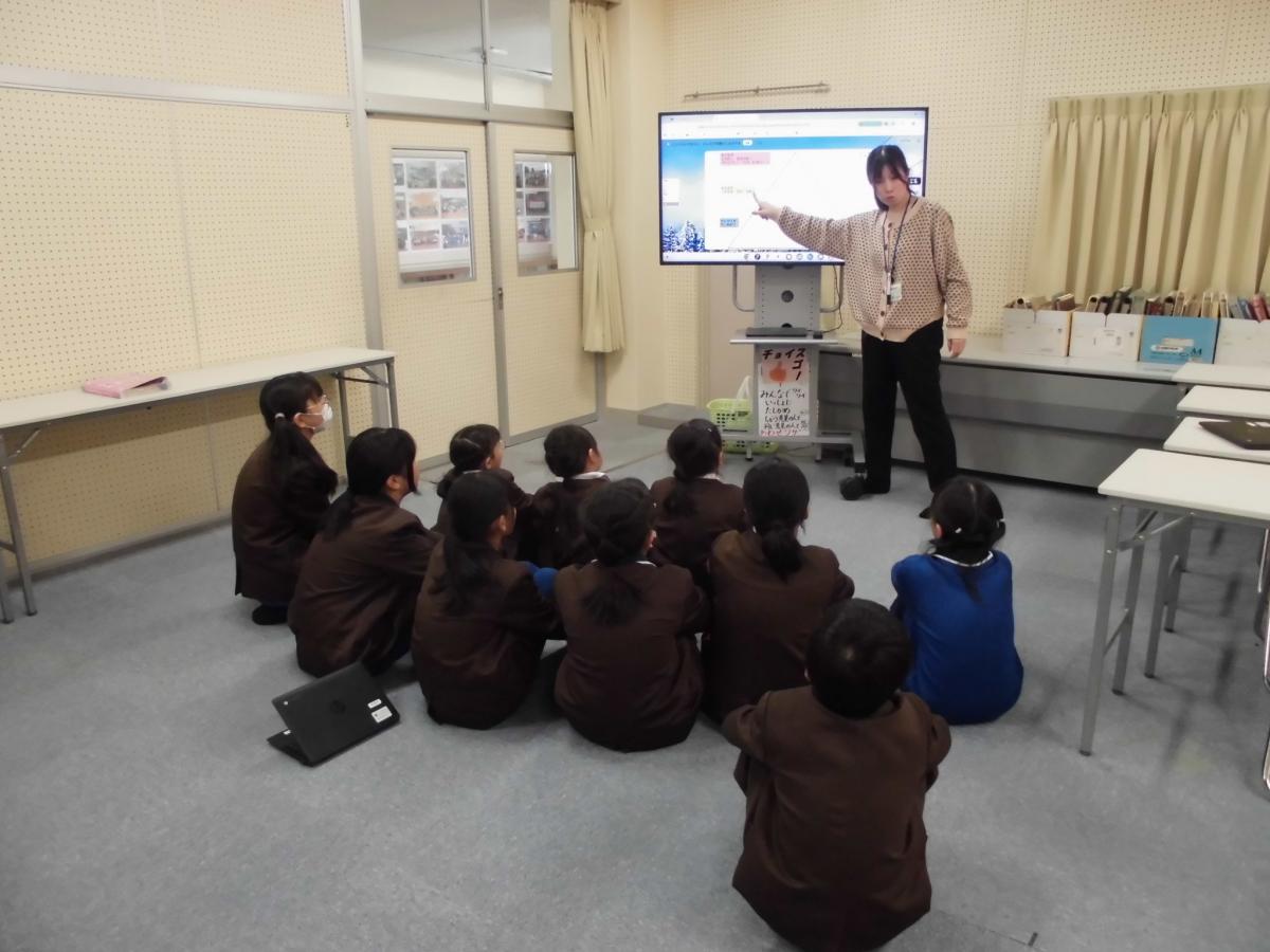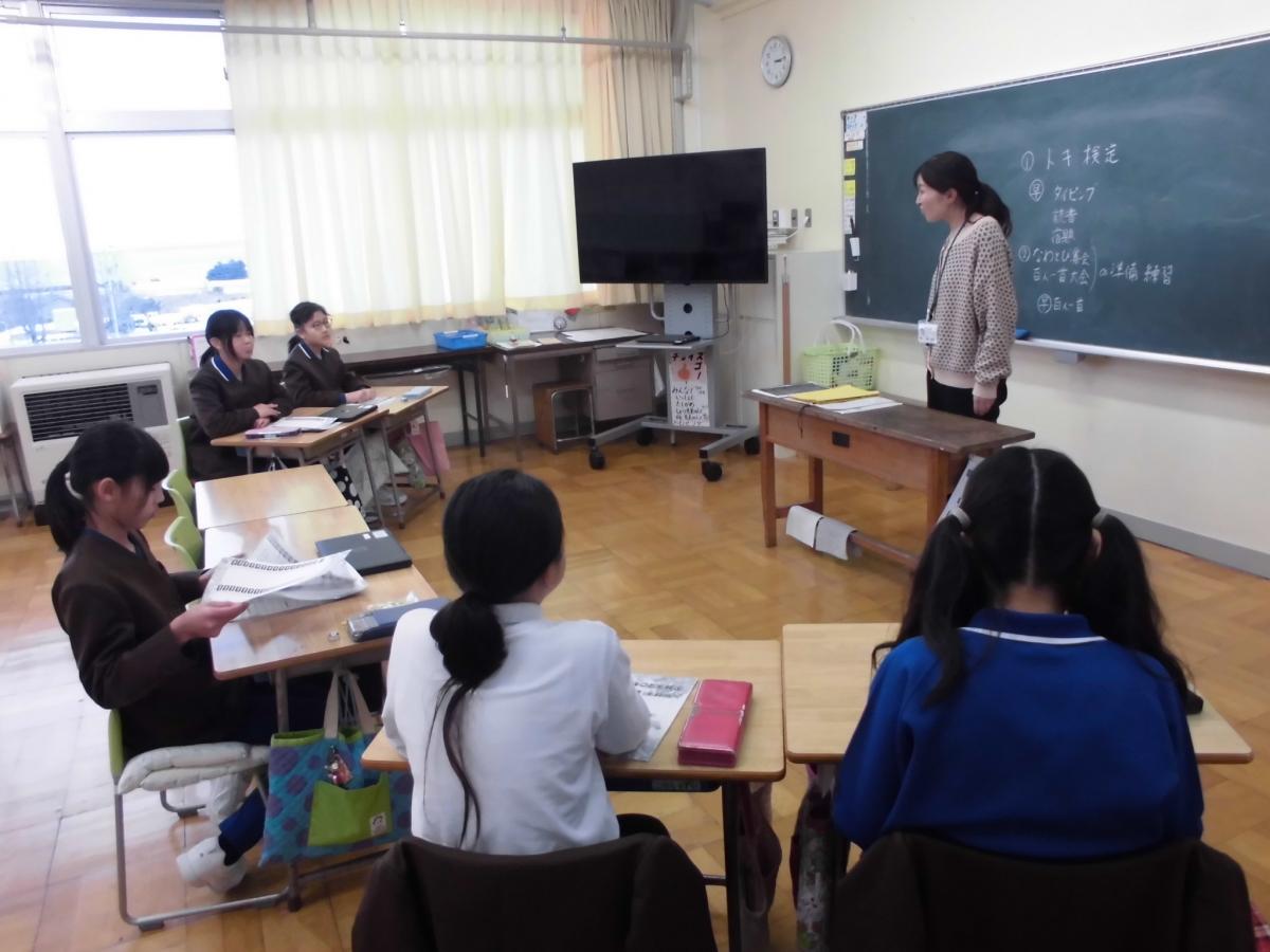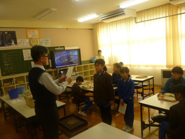 給食の時間に、正院町青年福祉員の方が来校され、今度の週末に企画した子供大会バスツアーのご紹介をして下さいました。是非たくさんの参加者で、楽しい週末を過ごしてほしいと思います。