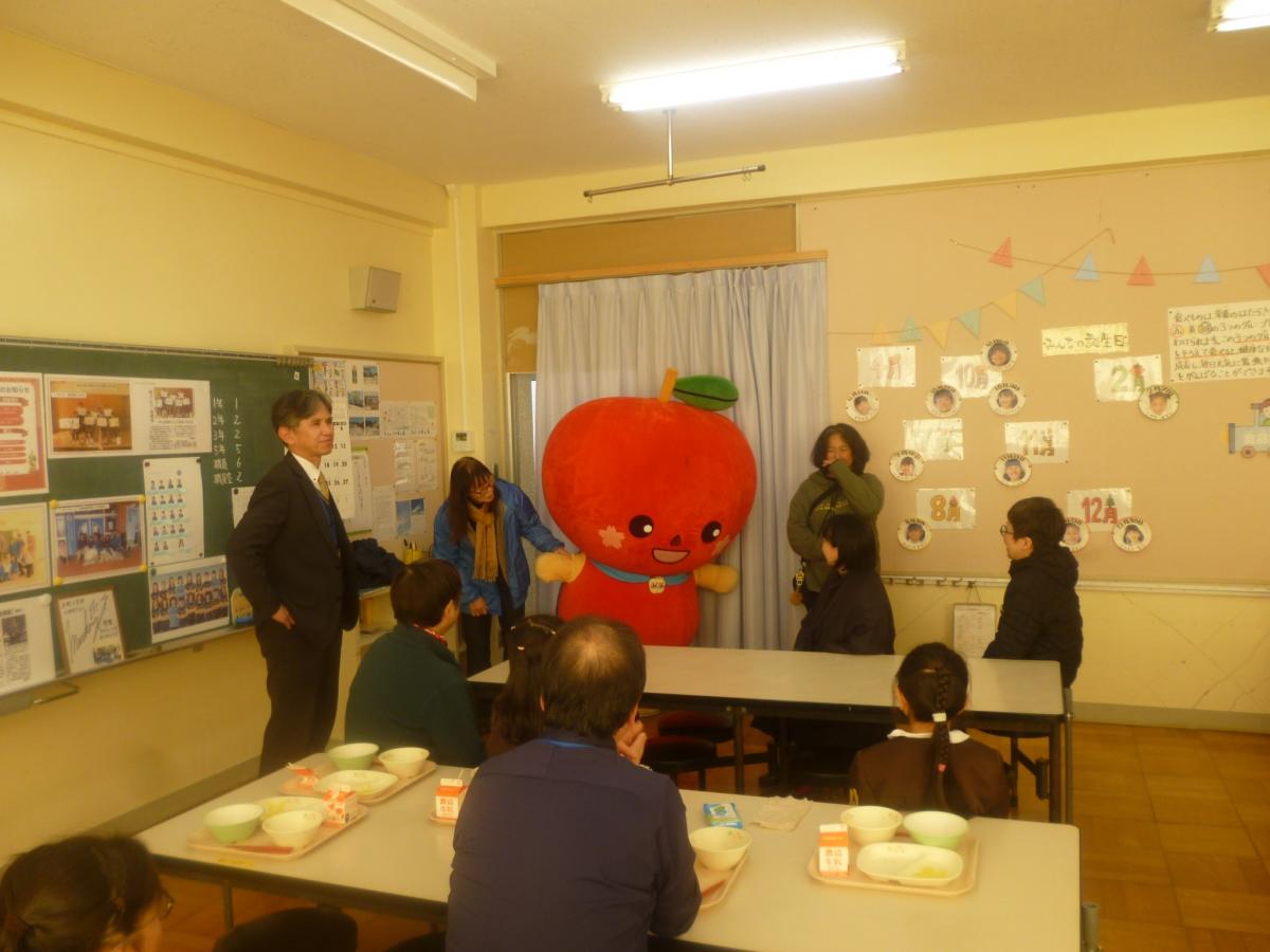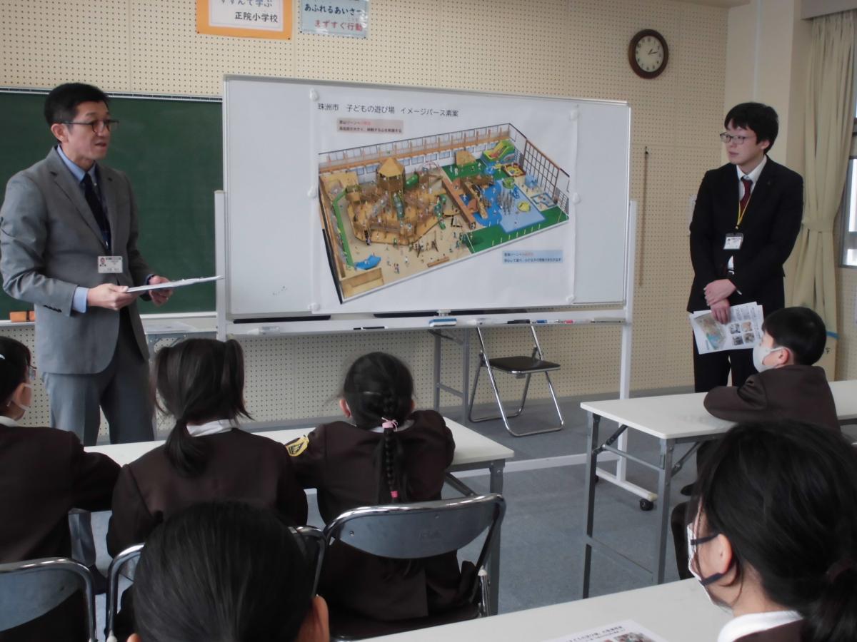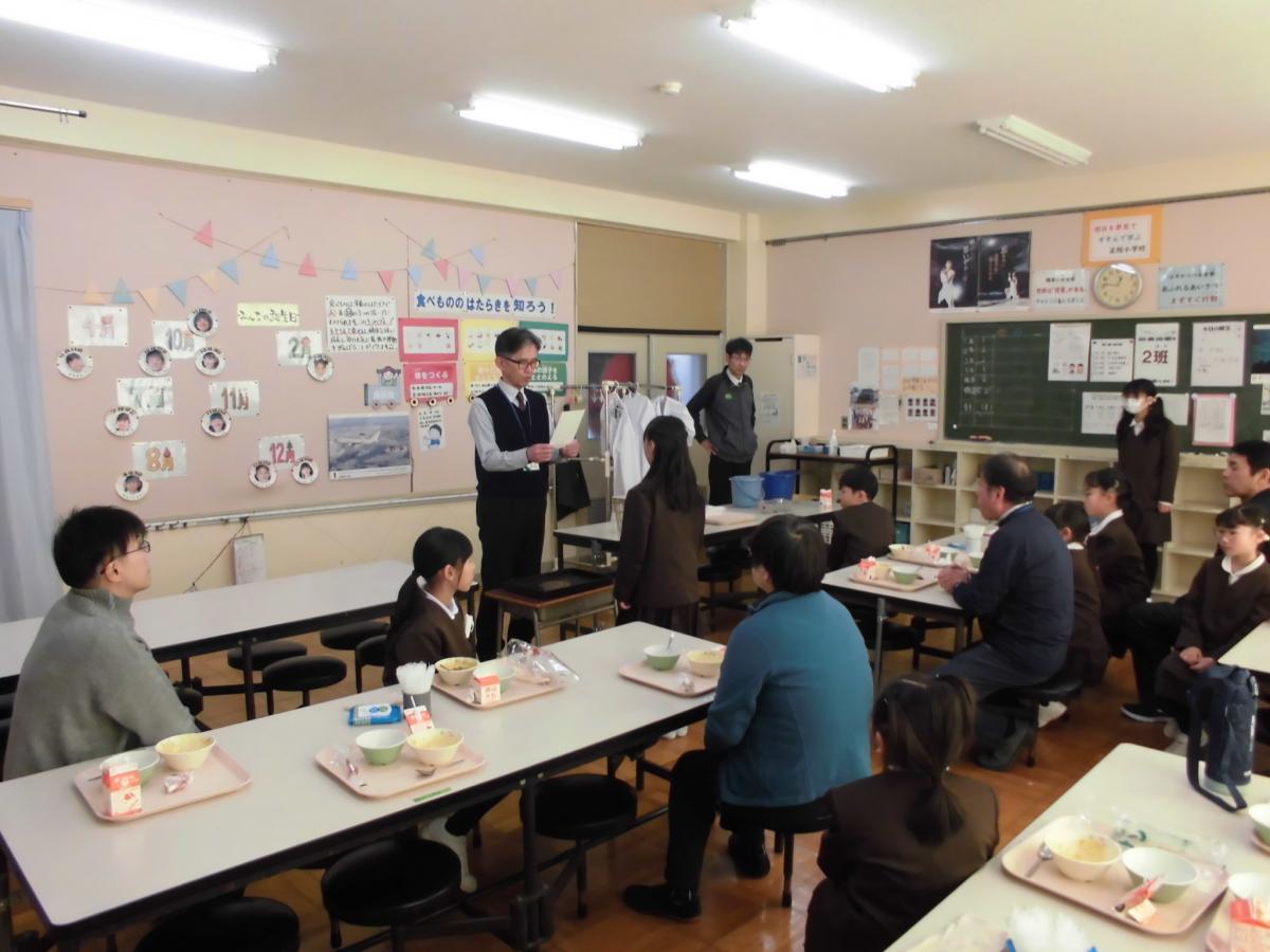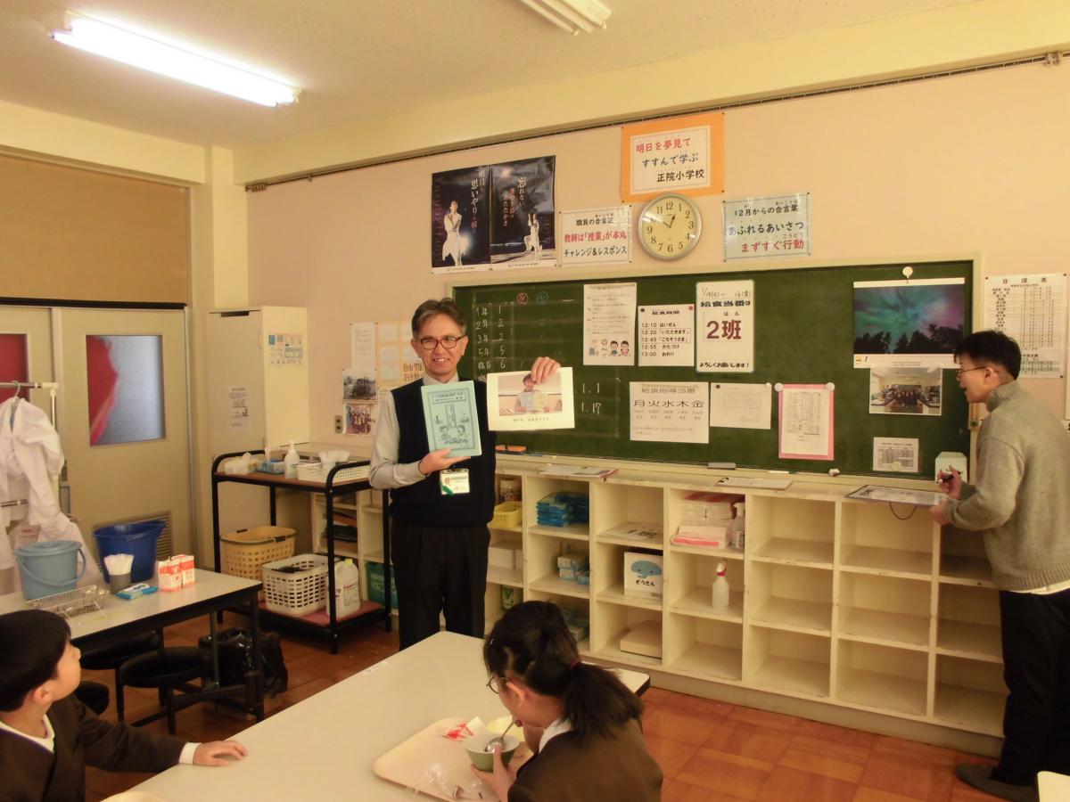 給食の時間に、正院町青年福祉員の方が来校され、今度の週末に企画した子供大会バスツアーのご紹介をして下さいました。是非たくさんの参加者で、楽しい週末を過ごしてほしいと思います。