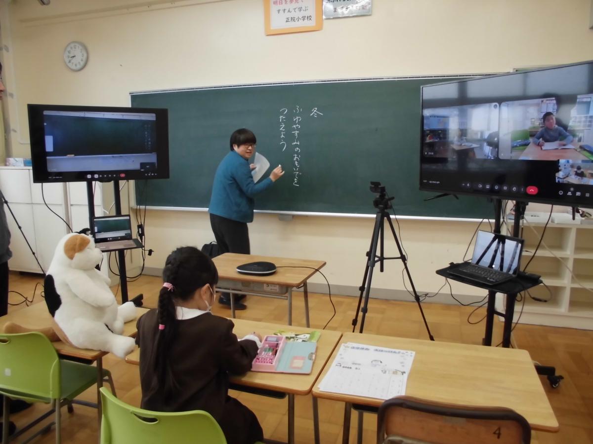 1限目に、1年国語のオンライン交流学習がありました。単元は「どうぶつの赤ちゃん」、〈どうぶつの赤ちゃんについてしらべて、わかったことを伝え合う学習でした。今回オンラインの不具合が発生し、うまくつながらない場面がありましたが、それでも互いに考えを伝え合う楽しい学びとなりました!