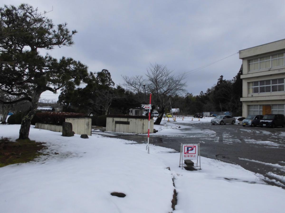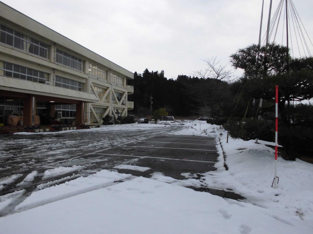 29日(木)、朝起きてみると新雪が予想外にふんわりと。学校前は昨日から10数cmの積雪がありました。昨年3月まで本校に勤めて下さっていた校務員さんが、自らすすんで朝5時から除雪して下さって、子どもたちの登校時刻までには、玄関前はきれいになっていました。本当にありがたいことです、感謝!