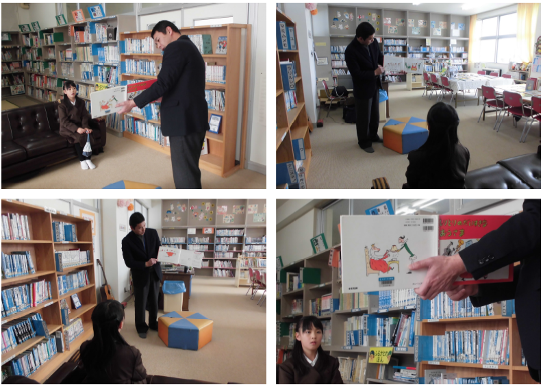5年生は「おかえりなさいスノーマン」の読み聞かせ。寒い冬の一日が終わるころ、公園の奥に、子どもたちが作ったスノーマンが立っていました。「やあ!スノーマン、おかえり」と声をかけてきたコマドリと、町を歩きまわり、美しい風景を存分に楽しみます。しかし、夜明けが近づき太陽が顔を出すと、スノーマンはゆっくりと溶けていって……。作者が亡き友に捧げた、心あたたまる絵本でした。