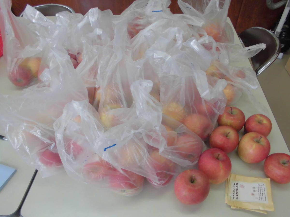 ◇日本防災士会長野県支部の皆様…影武者様・清水様による復興支援みらいコンサートを企画・運営して下さり、来校の折にたくさんのりんごをいただきました!