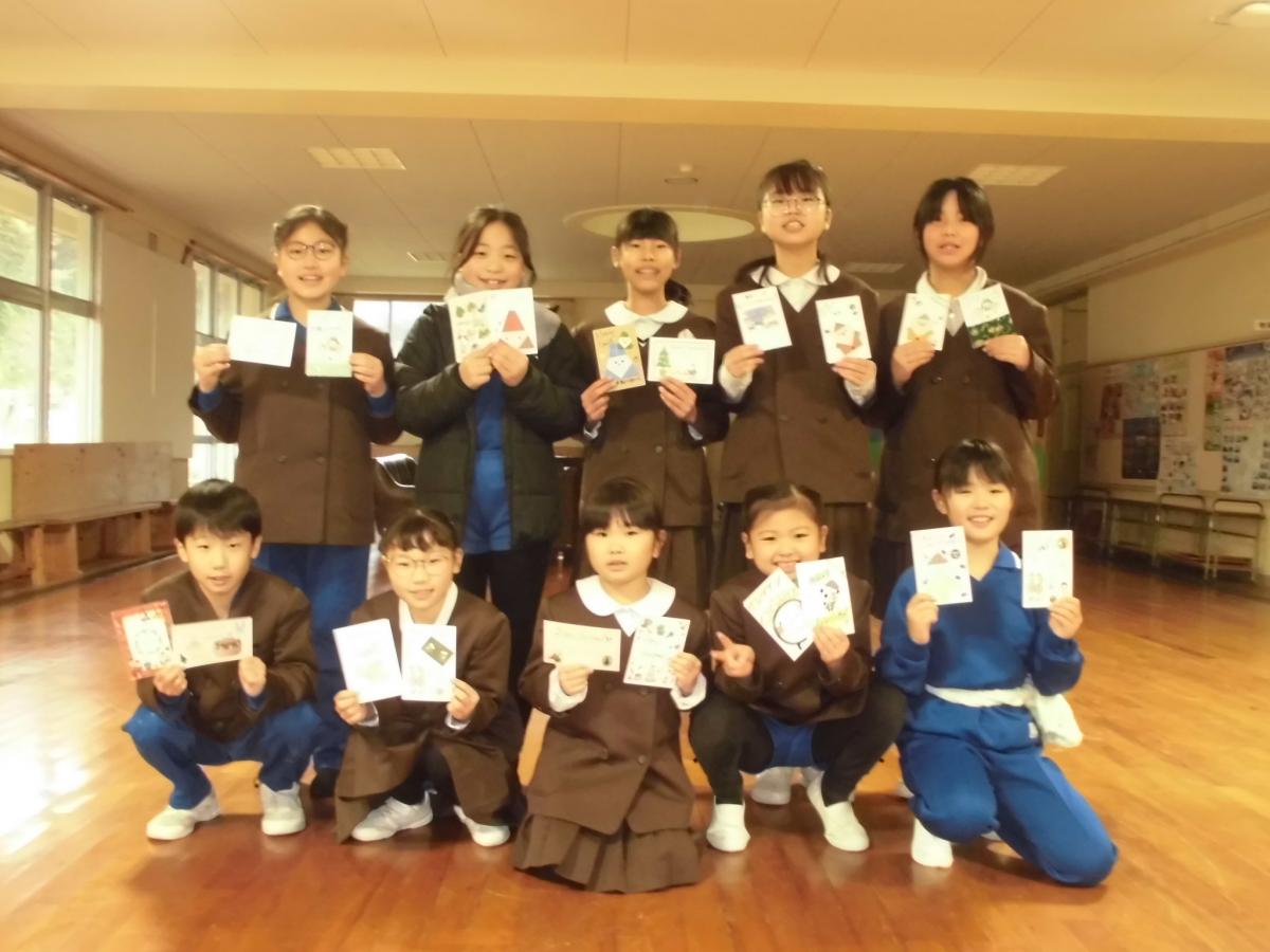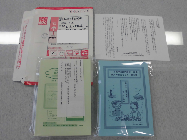 また、今日も素敵な贈り物が。大阪府様から万博・ミャクミャクグッズが、また「被災地の子どもたちにクリスマスカードを届けよう!」プロジェクト代表の中央大学名誉教授・田中拓男様より、たくさんのクリスマスカードがとどきました。大阪府様には、夏休みに万博に招待していただき、本校にも参加した児童がいます。田中様には今年1月にも素敵な式をいただいております。繰り返し届けていただく素敵な贈り物に深く感謝!