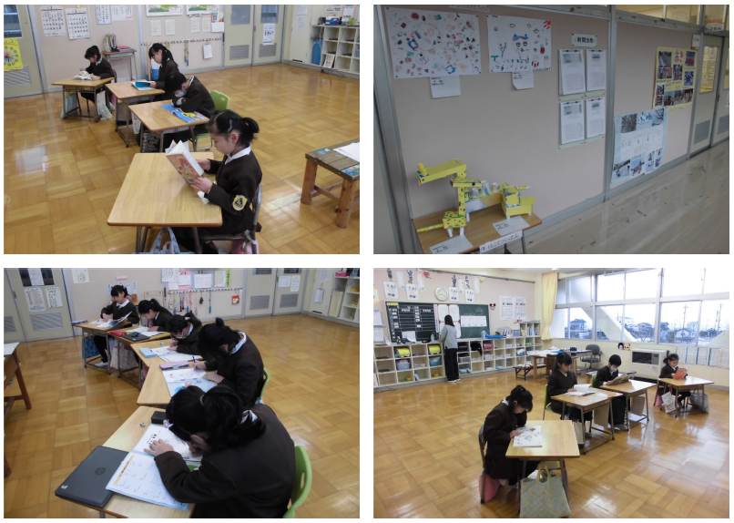 朝の様子を見に行くと、1・2年生は静かに朝読書、4・6年生は学年のまとめの宿題の答え合わせをしていました。今日もみんなすすんで学ぶ姿が見られ、朝から幸せな時間の流れを感じました。