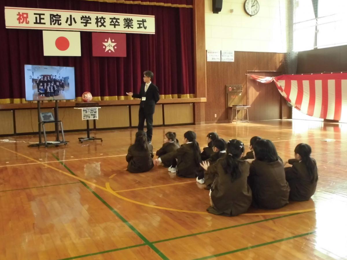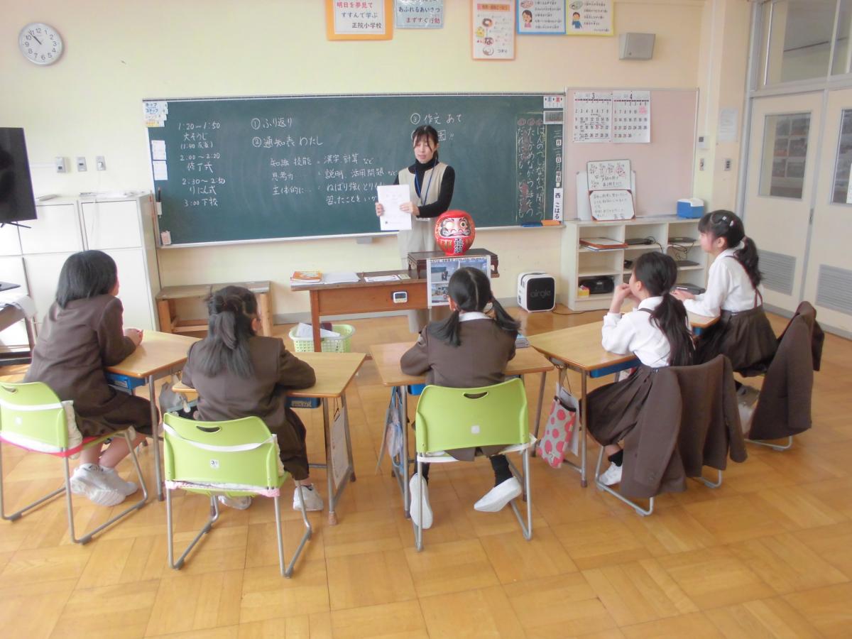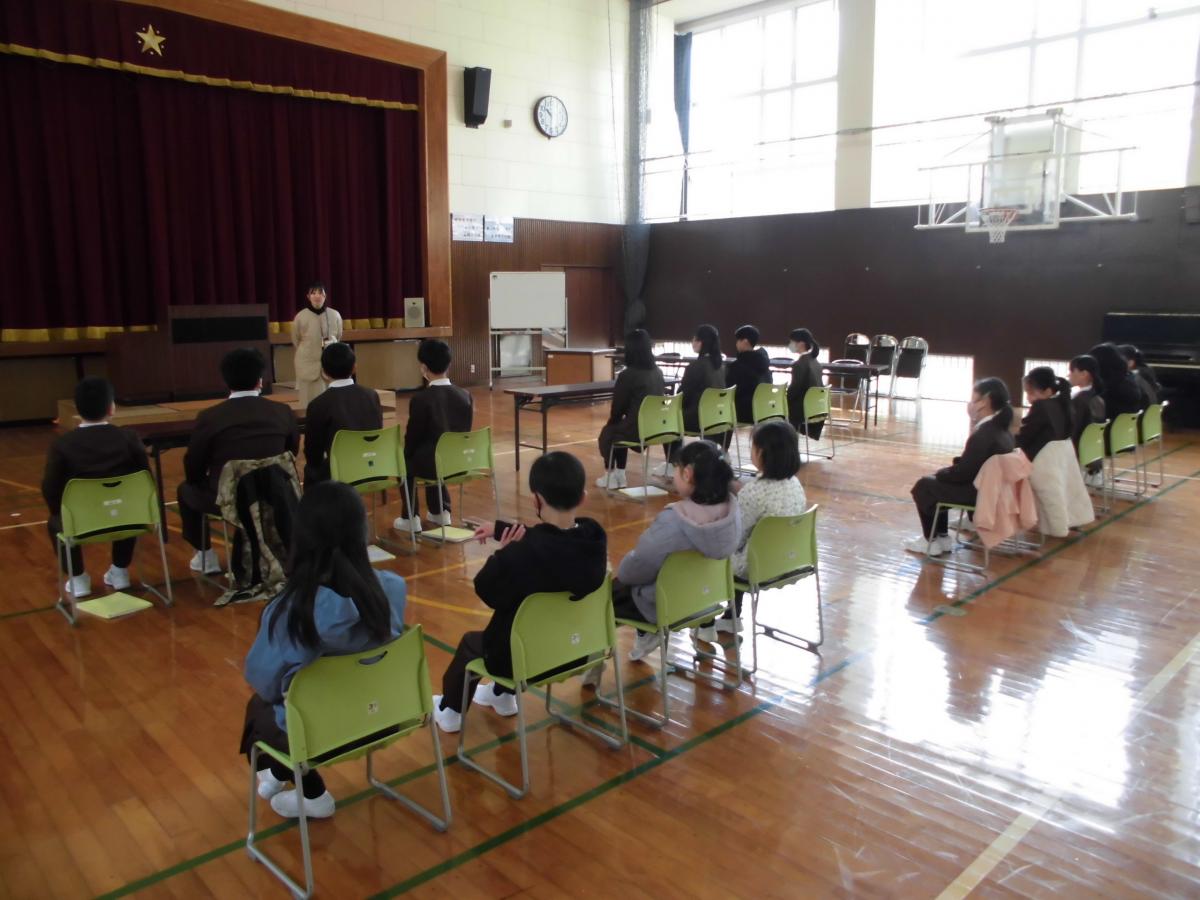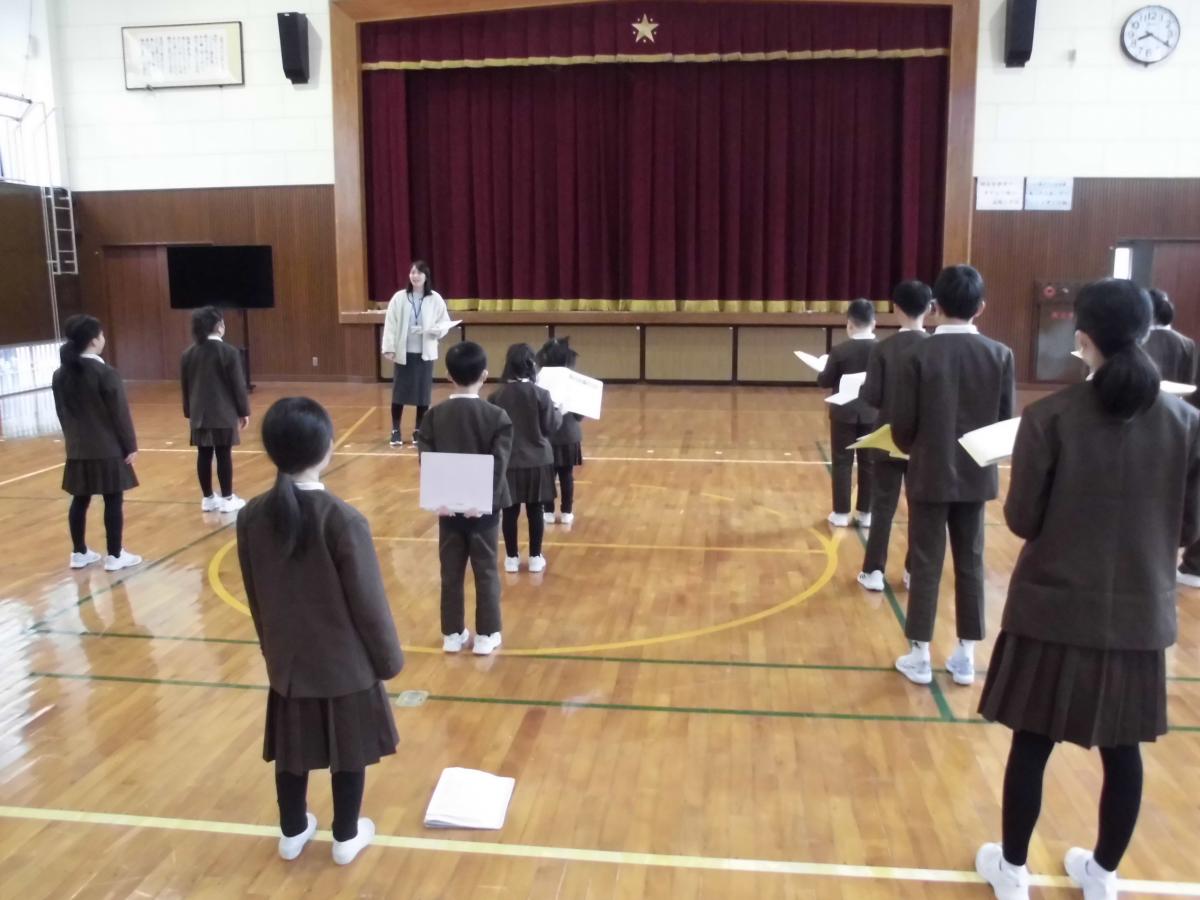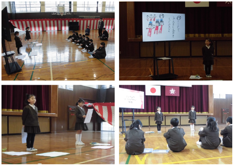 今朝は、学習集会を行いました。3学期の授業で目指す子どもたちの姿についてお話し、子どもたちと共有する時間です。3学期も、説明・記述する力をのばす授業に取り組むこと、授業の中でつけたい話す力・聞く力について話しました。「おじぞうさんワーク」という活動を取り入れ、聞くときに反応することのよさを確認し合いました。