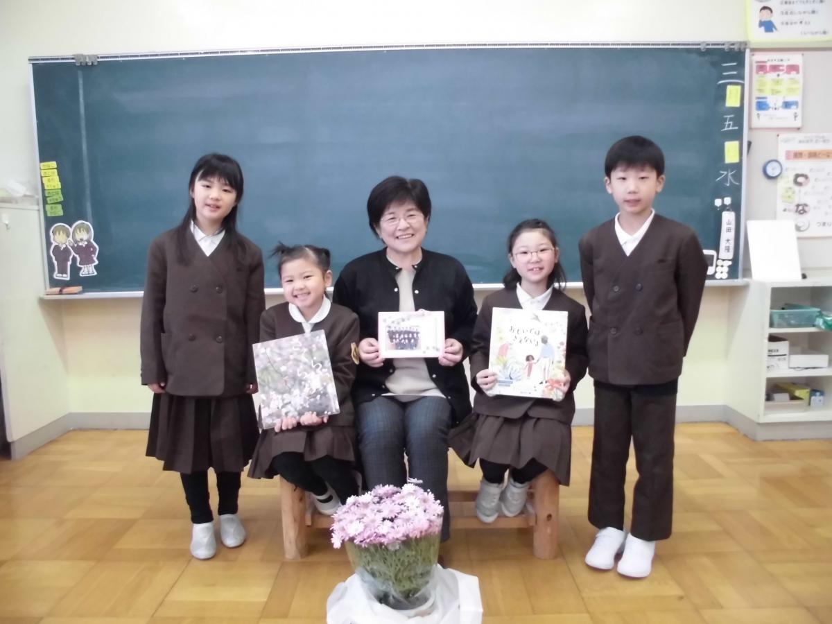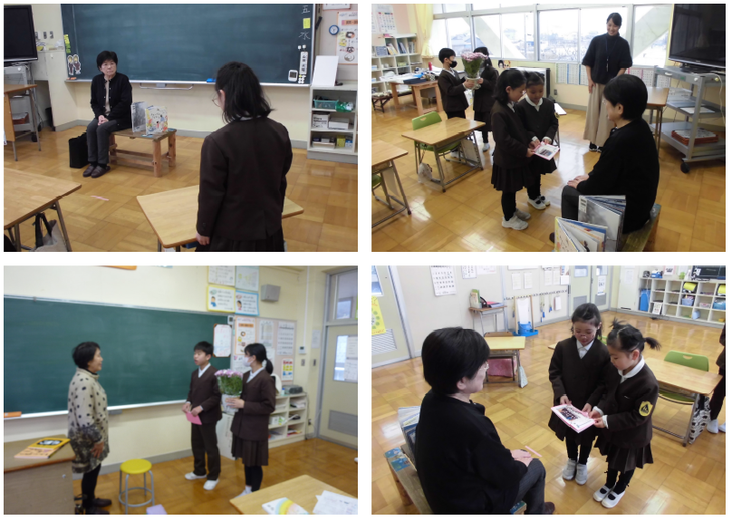 最後には、感想を伝えました。多くの児童が挙手して感想を伝えることができました。またお礼に、栞もプレゼント。感謝の気持ちを伝えることができました!