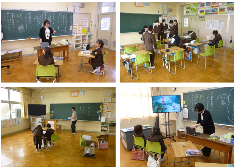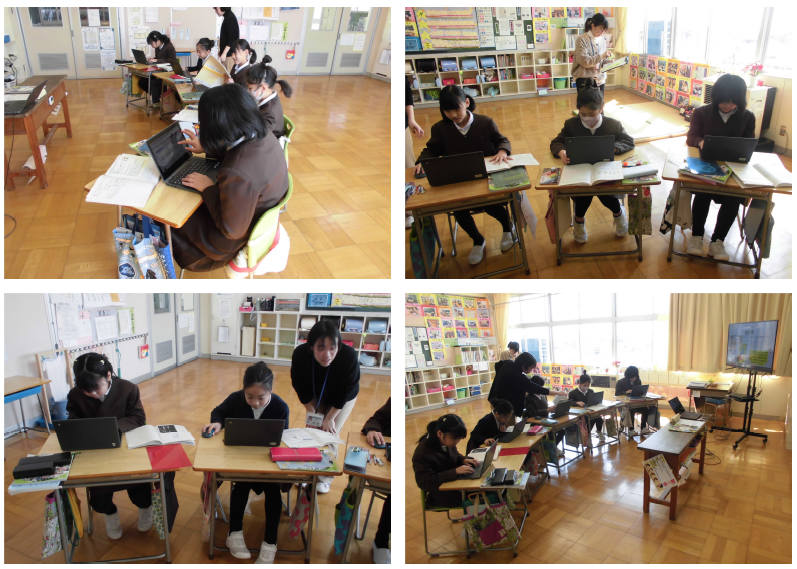 4年生は国語、自分たちが書いた紹介文を互いに読み合い、その違いについて考える授業でした。クロームブックを使って、互いの文を読み合い、共通点や相違点を探りながら、違いを楽しむ姿が見られました。