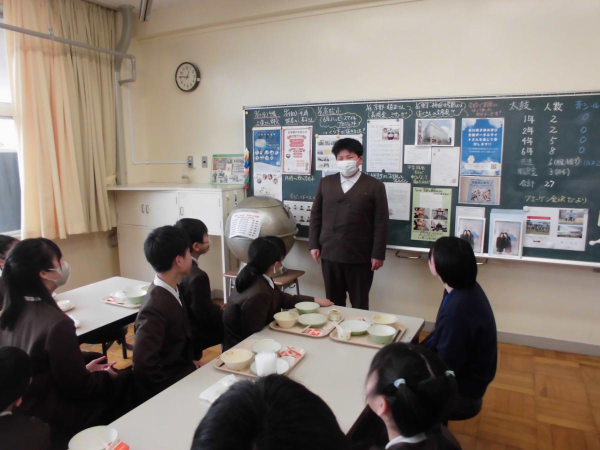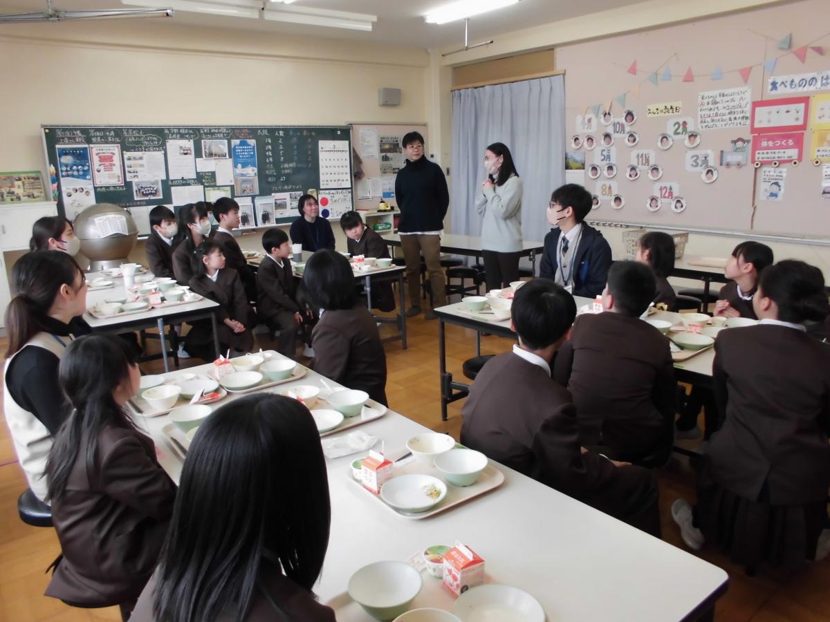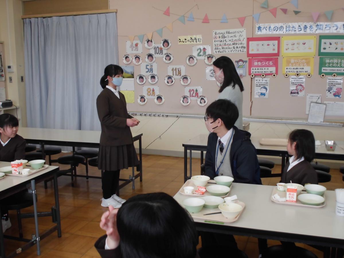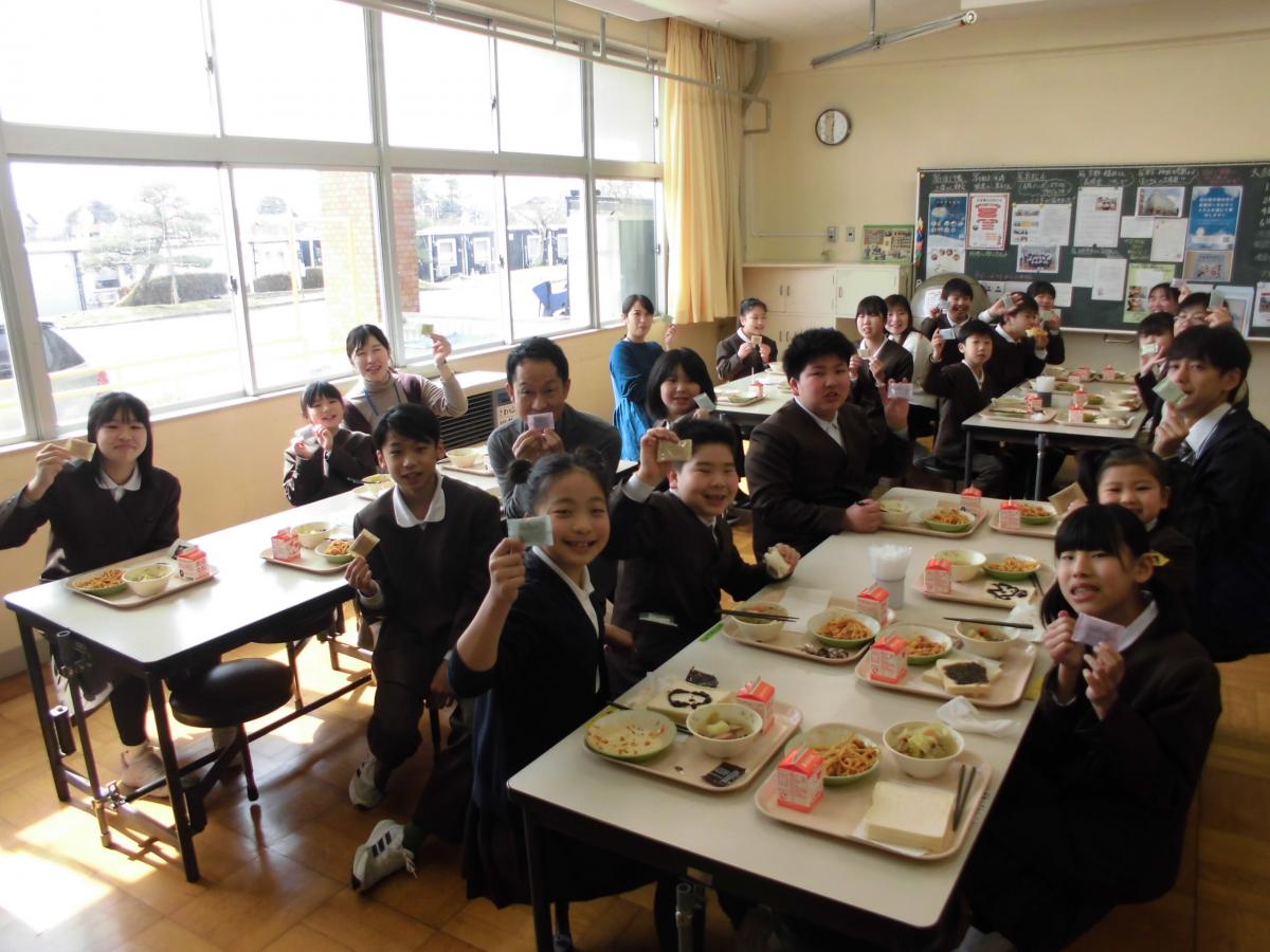 給食時に、児童と視聴しました。