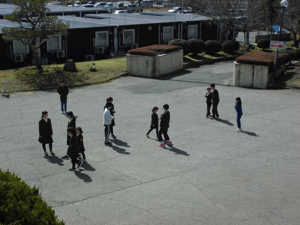 2限目の後半に、地震・津波を想定した避難訓練を行いました。あえて年度当初での訓練です。すでに何度も行い身についてきた子どもたち。地震があっても、津波が来ても3階一番奥のこの学習室4が皆さんの避難場所です!と話しました。今整備がすすめられている、学校裏の高台にある殿山避難場所。完成し次第、今後の避難方法を確認する予定です。みんな上手に避難できました!