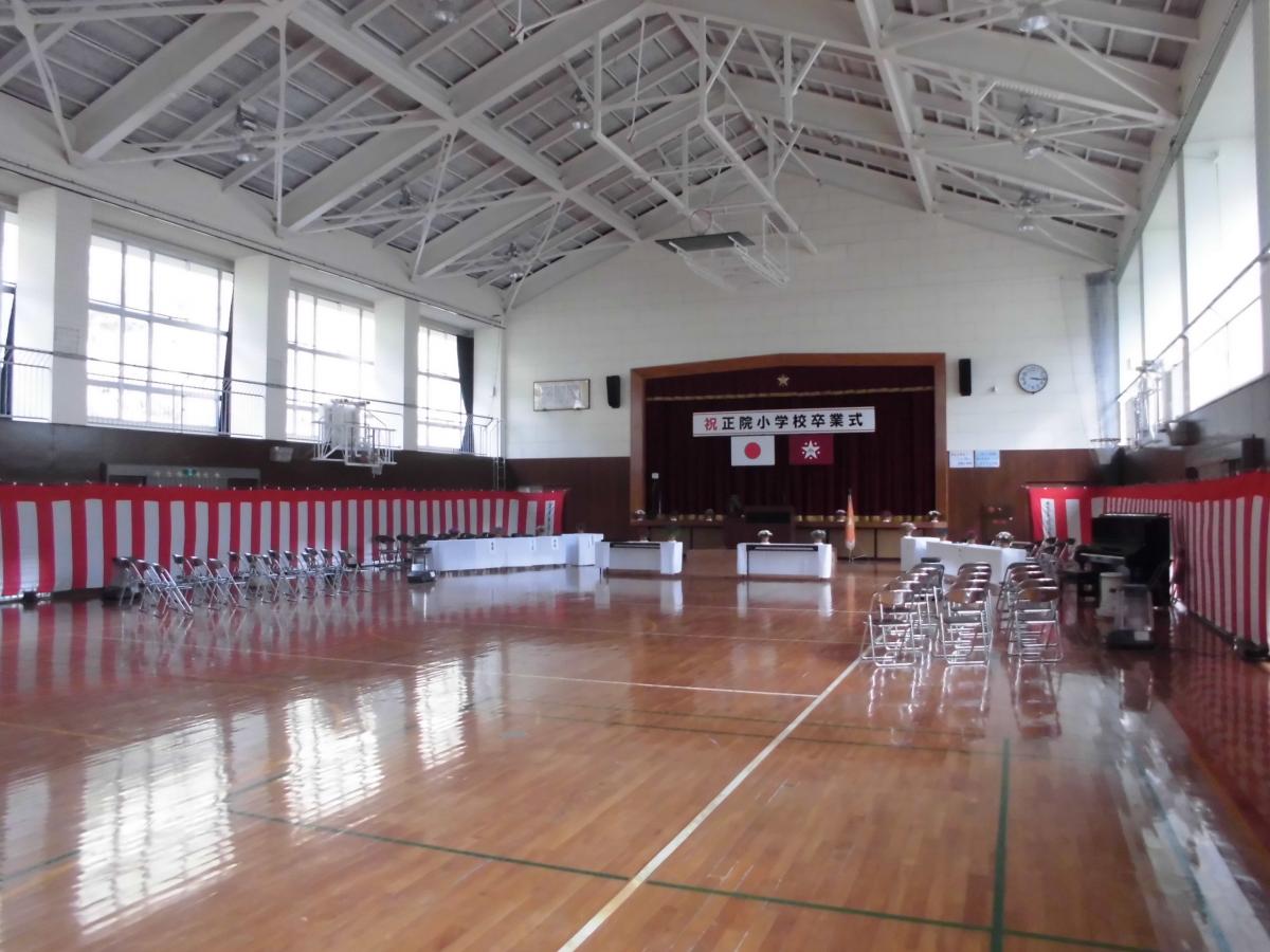 8時30分から新5年生と全職員で入学式準備です。約1時間で、式場となる体育館や1・2年教室、廊下等の準備が仕上がっていました。5年生は最上級生としてきびきびと行動してくれました。さすがです!ありがとう!