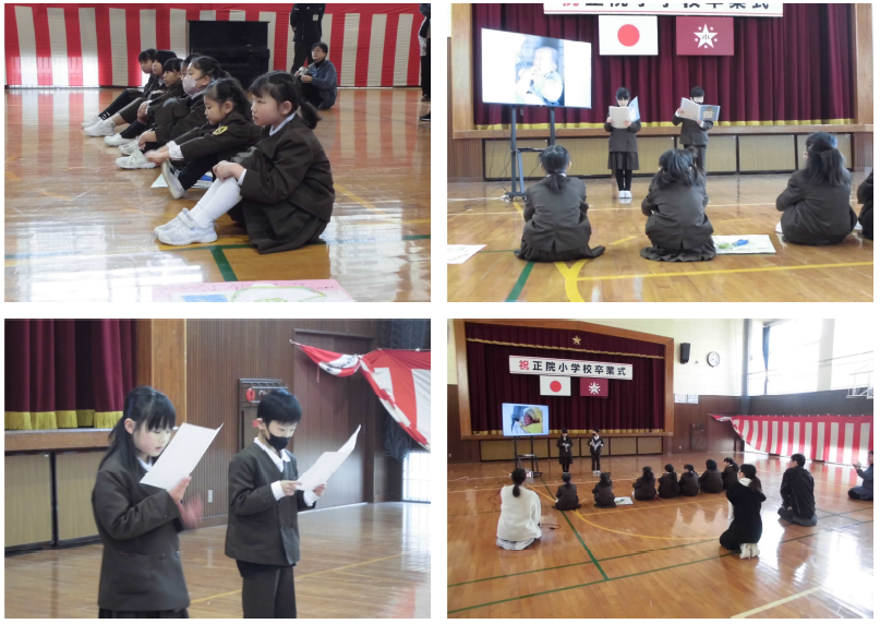 式辞で子どもたちにお願いしたことは、①ランドセルに元気と夢をたくさん入れて登校してほしいこと、②いつもの毎日を過ごせることに感謝し、あふれる声で・あふれる夢で正院小学校の伝統を守っていくことです。子どもたちは最後までしっかりうなづきながら聞いてくれました。在校生代表の歓迎の言葉もとってもよかったです!