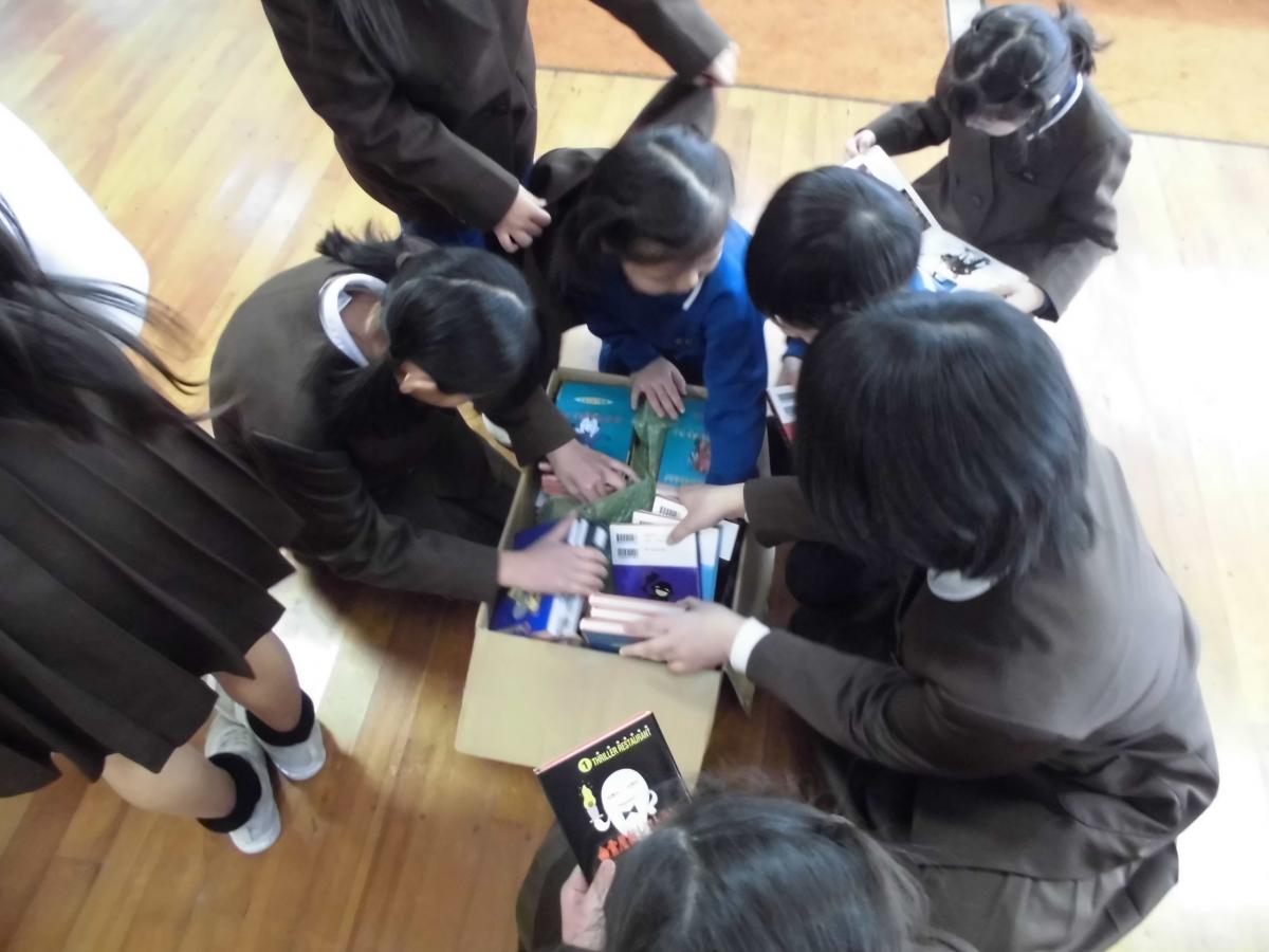 ◇東京都・神田女学園様…先日のたくさんの文房具に続き、今回はたくさんの本をいただきました!