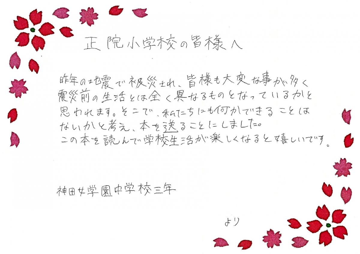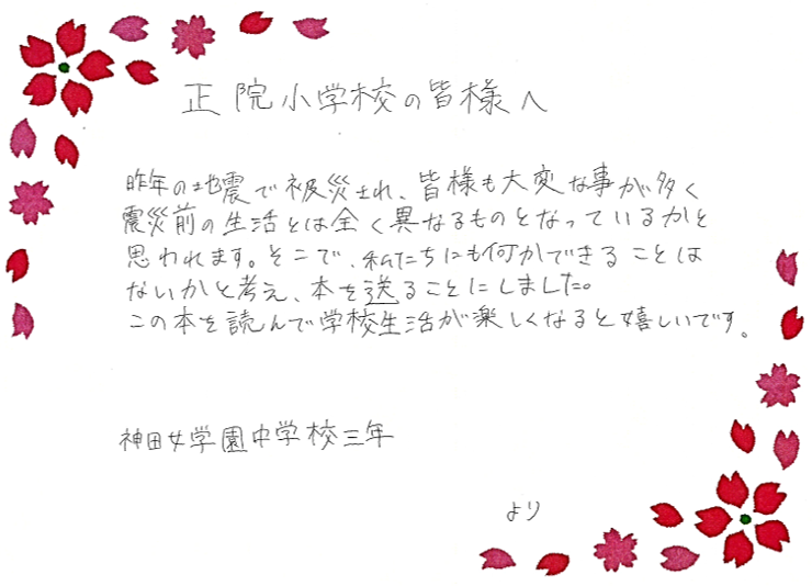 神田女学園の皆さん、本当に素敵な贈り物をありがとうございました。