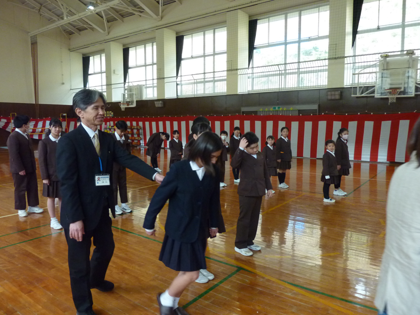 式後は、3~5年生は体育館の片付けと学級活動、1・2年生は交通安全グッズ贈呈式と初めての学級活動でした。1年生はお父さん・お母さんと一緒に、しっかり最後までお話を聴いてくれました。