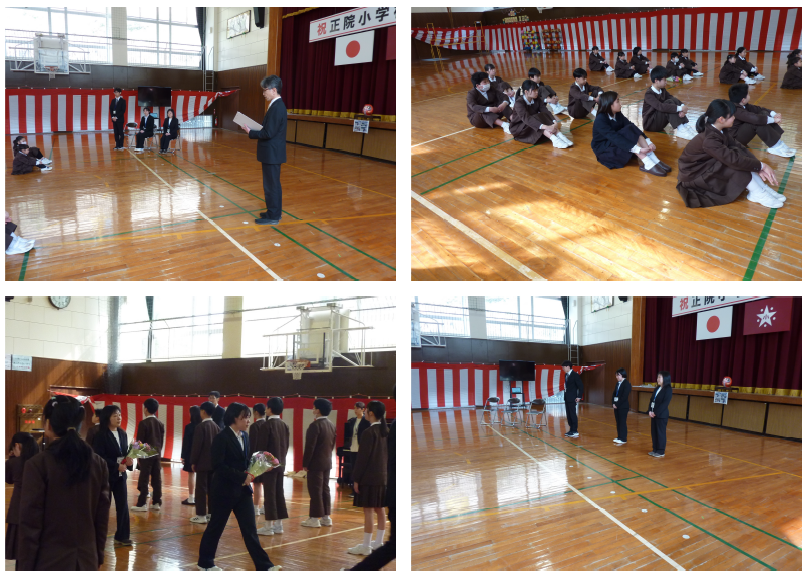今日は朝の会、朝掃除を済ませて、新任式・始業式を行いました。まずは4月から新しく正院小においでた4名の先生方との新任式でした。子どもたちは少し緊張気味に、どんな先生なのかをしっかり見ているようでした。