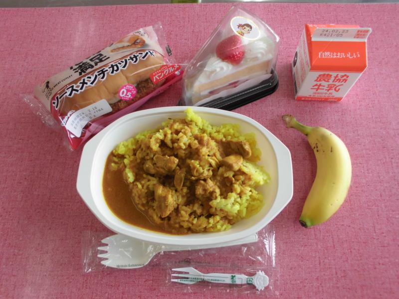 和風おかず弁当、焼きそば、野菜スープ、カステラ、牛乳でした。