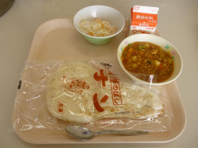 本日の献立は、ごはん・栗コロッケ・大根とハムのサラダ・えのきと油揚げのみそ汁・牛乳でした。栗コロッケには、さつまいもと秋の味覚が入っています。秋の味覚を味わいましょう。今日もおいしくいただきました!