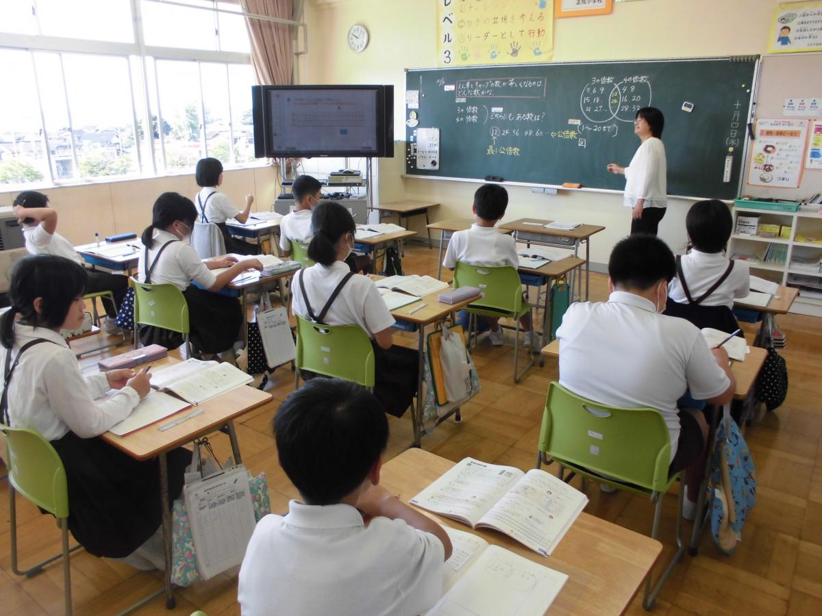 この日は、倍数・公倍数・最小公倍数とはどんな数かを知り、自分で求める授業でした。子どもたちは数直線等の図をうまく使って、最小公倍数まで求める姿が見られました。