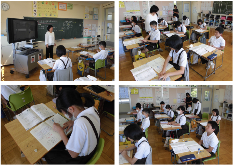 7月は,互いの算数科の授業を参観し合い,授業改善につなげる取り組みを行っています。この日は,3限目に4年生で参観授業が行われました。4年生は1名の学級ですが,複数いる時と同じように,たくさんの説明の場面で,自信を持って分かりやすく説明してくれる姿が見られ,とてもよかったとの感想が多く聞こえました。授業後,急に泣き出す姿があり,どうしたのか聞くと,先生ばかりの前で説明するのがすごく緊張したとのこと。それでもあれだけの説明ができたことは次につながる経験だなぁと感じました。とってもよく頑張りました!!