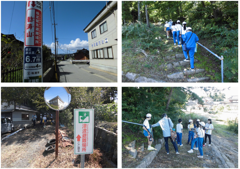 6日(水)の3~4限目、6年生は正院町の方々が実際に避難するためのハザードマップ作成に向け、今日はかんど山や地域の避難経路を実際に見て回る学習を行いました。かんど山には、小町公民館長さんをお招きし、今昔のかんど山の様子についていろいろ教えて下さいました。特に、この山は館長さんが子どもの頃は、子どもたちの遊び場であったこと、この山から見える景色が素晴らしかったことなど印象に残りました。6年生は実際に上った時の様子をタブレットで動画撮影したり、階段の数を確認しながら学んだことを記録に残していました。