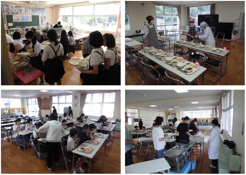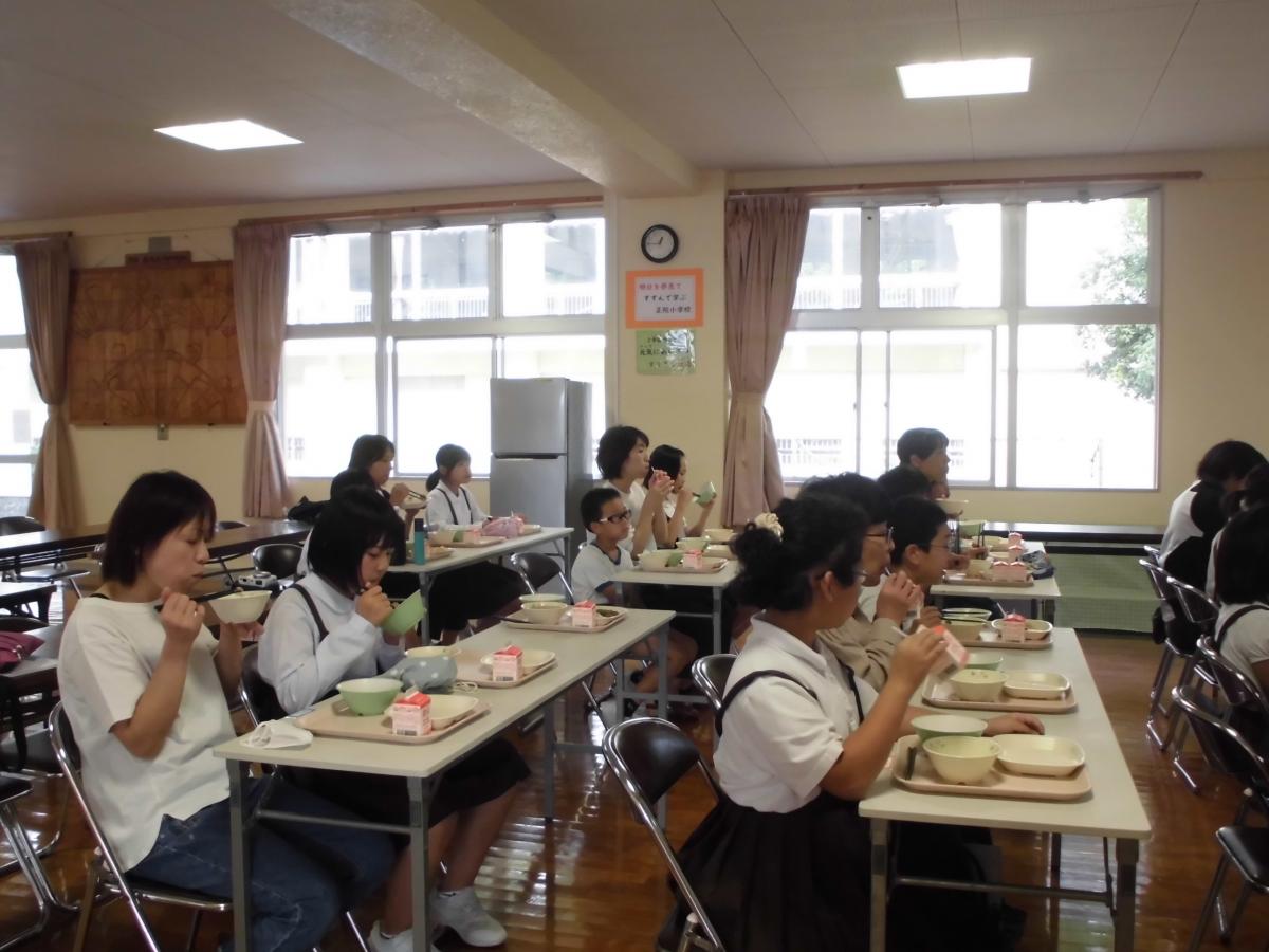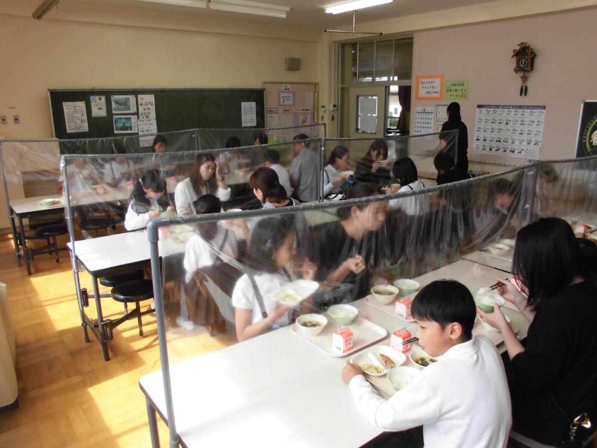 少し早めに保護者4名にご来校いただき、お手伝いいただいて給食試食会を行いました。17名の保護者に給食を試食していただきました。