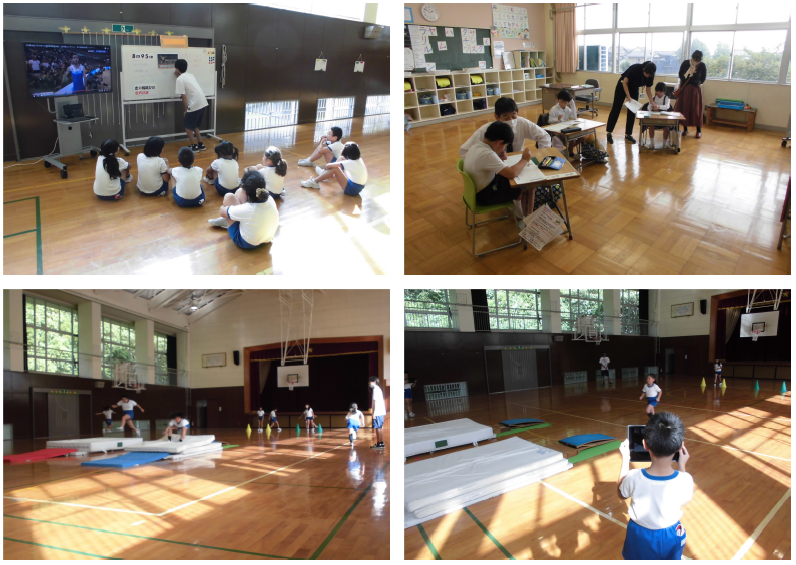 授業参観は、1年生は道徳・家族愛がテーマでした。母の愛情がお話の中心。お母さんを後ろに、3人が自分の考えを話す姿がありました。3・4年生は体育・走り幅跳びです。体育館の真ん中に大きなマットをおいて、タブレットで互いの運動の様子を録画・再生しながらよい跳び方を考える姿がありました。5年生は道徳・1年生と同じ家族愛について考えました。家族の幸せを考えることの大切さを学ぶ姿がありました。6年生も道徳・テーマは情報モラルについてです。子どもにスマホを持たせるかについて、児童と保護者が一緒に考える様子が見られました。どの授業でも、保護者の前だからいつも以上に頑張ろうとする姿がみんな光っていました。