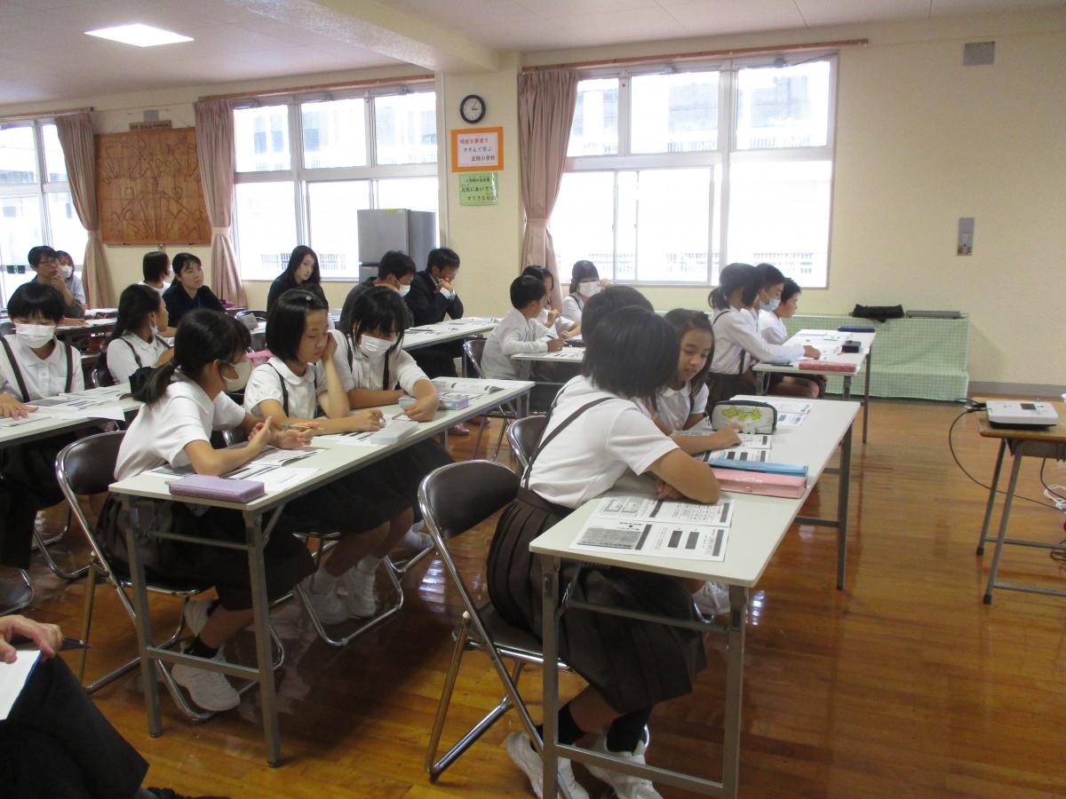 26日(火)の午後、6年生は金沢大学能登学舎(旧能登里山里海自然学校)を訪問し、防災学習会に参加しました。6年生は今、総合的な学習の時間に5月の地震を受けて、『自分たちにできること』をテーマに、学習をすすめています。今回は、石川県立大学・山下良平准教授の講義を聞きました。内容は、22年7月に山下氏が市内全家庭に依頼した調査結果の報告でした。数字を根拠に説明する説得力を感じながら、子どもたちは最後まで真剣に話に聞き入っていました。最後の質問タイムでも積極的に質問する姿も見られ、よい学びの機会となりました。