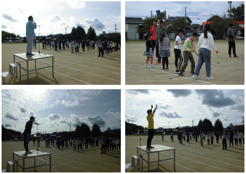 8日(日)、好天の下、本校グラウンドにて正院町町民体育大会が開催されました。8地区の皆様、約200名の町民の皆様が参加されました。小学生も17人が参加していました。