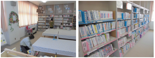 地震後,余震を警戒し本棚に戻してなかった本を,24日に学校司書さんと校務員さん,スクールサポートスタッフさんにお願いし元の本棚に戻していただきました。