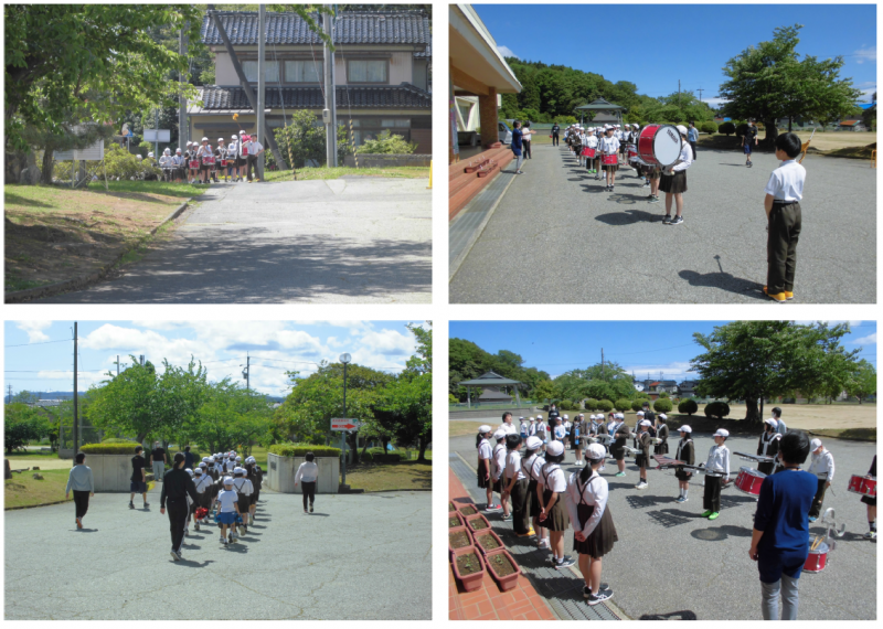 24日,午後から鼓笛パレード練習を玄関前及びグラウンドで行いました。最初に,鼓笛担当から『地域の皆さんに笑顔と元気を届けられるよう,精一杯練習に取り組みましょう。』と話し,子どもたちも真剣に練習に取り組む姿が見られました。本番まで,子どもたちが『地域の皆さんに笑顔と元気を届けたい』という思いが伝えられるよう,日々練習に取り組みます!