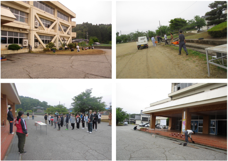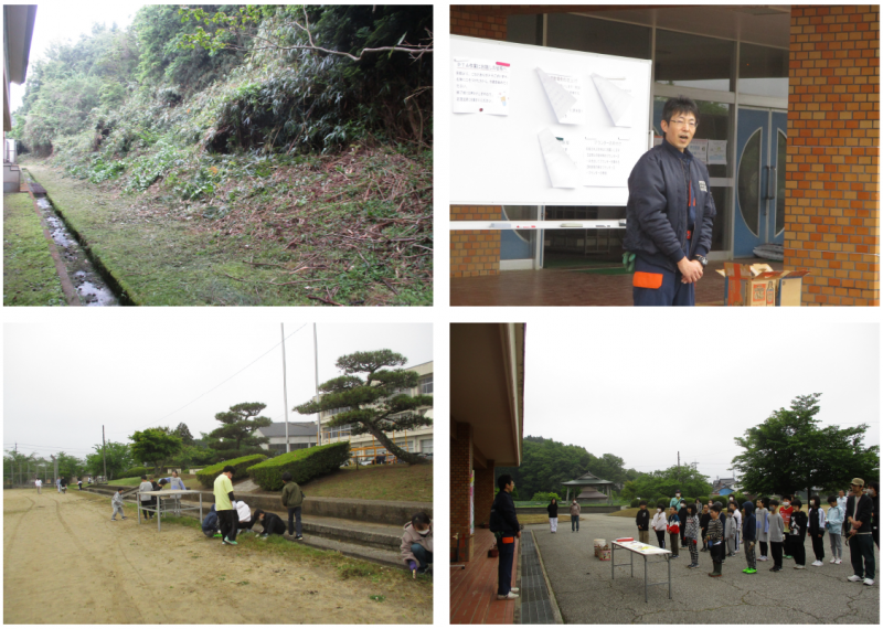 20日(土)朝6時から,保護者による除草作業を行いました。児童には参加しなくてもいいよと伝えましたが,18名の児童が進んで参加してくれました。22名の保護者と児童の協力で,玄関前・運動場横の溝や除草作業,校舎裏の植木鉢の整理,体育館裏竹やぶの伐採作業に取り組んでいただきました。お忙しい中,皆さん本当にありがとうございました!