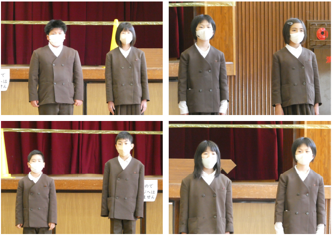 16日朝,火曜日は集会の日,今日は5年生が学年発表を行いました。内容は国語科で学んだ2つの詩「銀河」「かんがえるのって おもしろい」の音読です。前日までは欠席者のいた5年生,この日は11人がそろって発表できました。それぞれが読む部分を分担して,強弱をつけたり,ゆっくり読んだりしながら詩の内容がより伝わるように発表してくれました。発表後は,他学年のほとんど全員が自分の感想を伝えてくれました。