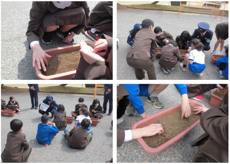 27日の午後,珠洲警察署の方々にご来校いただき,けんちゃんの朝顔植えを行いました。昨年度も警察からの依頼で植えたけんちゃんの朝顔,成長した様子をホームページにアップすると,けんちゃんのお母さんがそのページをご覧いただき,お手紙が届くということがありました。今年度もこうして,児童が交通安全を祈りながらけんちゃんの朝顔を育てる様子をホームページを通してみていただきたいと思います。