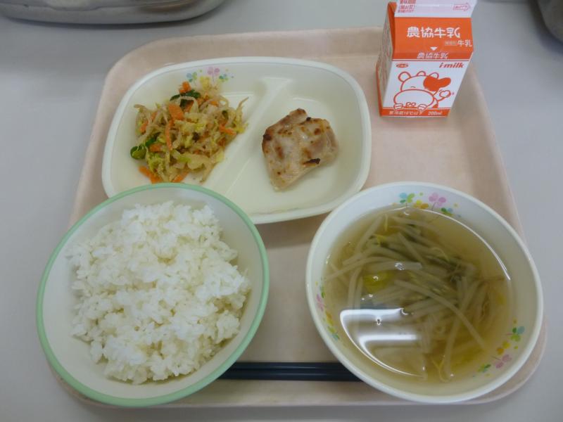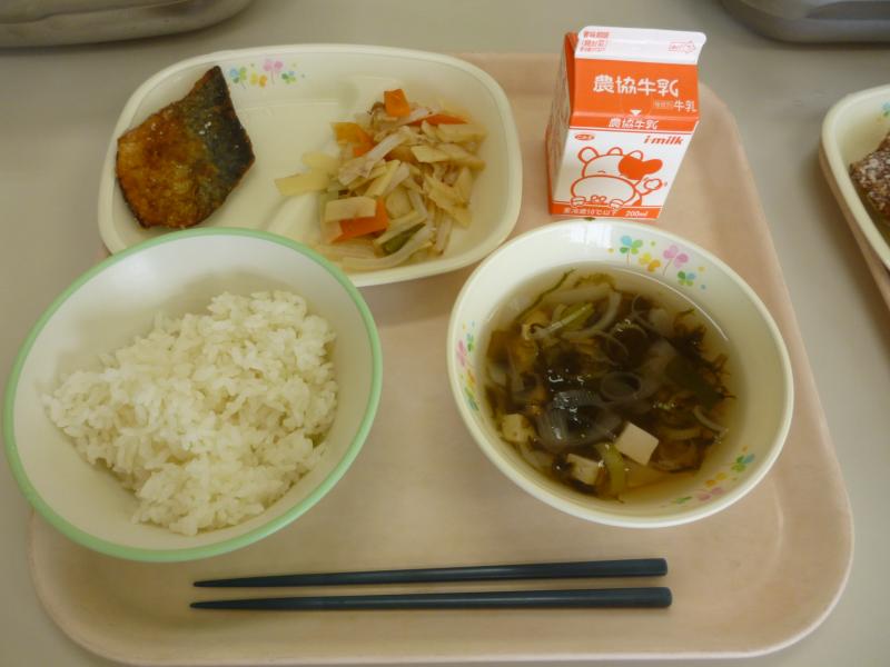 本日の給食は、ごはん・サバの竜田揚げ・タケノコのおかか煮・岩のりのすまし汁でした。サバは漢字で書くと『鯖』。魚へんに青と書きます。その名の通り背中はきれいな青色をしています。血液をサラサラにする効果があるDHAやEPAが多く、たんぱく質・ビタミンも豊富なため、成長期には欠かせない食材のいとつです。今日もおいしくいただきました!