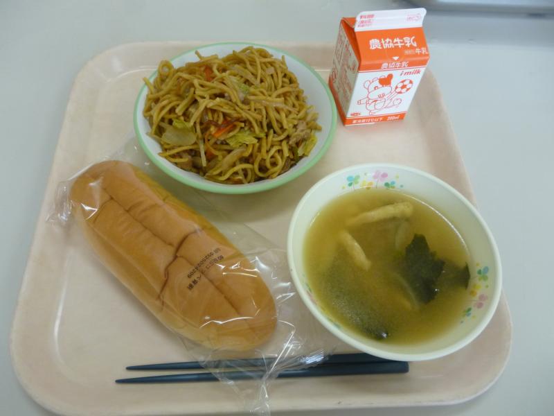 本日の給食は、コッペパン・焼きそば・ほうれん草のみそ汁・牛乳でした。給食では、なんと!焼きそばは炒めて作りません。麺の上に野菜とお肉を重ねてセットし、スチームコンベーションという機会に入れて蒸し焼きにしています。そして焼きあがった後に、麺と具材を混ぜ合わせて焼きそばが完成します。1食にたくさんの食材調理している給食では、毎日お家とはちがった機械が活躍して、みなさんのもとに美味しい給食を届けています。今日もおいしくいただきました!