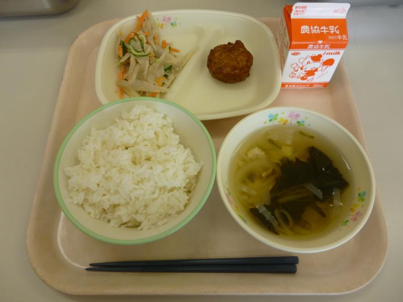本日の給食は、ごはん・鶏肉と野菜の焼きつくね・ごぼうサラダ・ほうれん草のすまし汁でした。ごぼうは、土の中の根を食べる根菜です。昔の中国の医療の考え方で、ごぼうをはじめとする大根やニンジン・レンコンなどの根菜は温野菜とよばれ体を温める働きがあるそうです。そして子どもは大人に比べると体温が高く、いわゆる『熱の人』なので、さらに体を温める根菜を嫌う傾向があるそうです。逆に、葉野菜など体を冷やす働きのある冷野菜菜を好むとのこと。しかしながら、温野菜は食物繊維やビタミンが豊富で、便秘や生活習慣病の予防に役立つので、積極的にとりたい野菜のひとつですね。ごぼうは皮にも栄養成分やうまみがあるので、皮むきはたわしで軽くこする程度で良いとのこと。今日もおいしくいただきました!