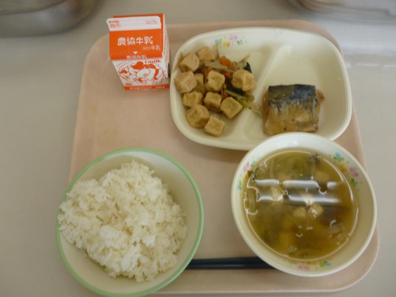 本日の給食は、ごはん・サバの味噌煮・揚げとごぼうのの炊いたん・わかめのみそ汁・牛乳でした。明日、5月10日は5を「ご」、1「ぼう」0「お」と読めることから『ごぼうの日』に制定されているそうです。ごぼうは食物繊維が多く含まれていて、お腹にたまったごみを体の外に運んでくれるので、便秘の予防に役に立つ野菜です。炊き込みご飯やお鍋・豚汁など入れると、名わき役とも言えるぼど食材の味がすごく味が引き立ち、美味しく仕上がりますよね。今日もおいしくいただきました!