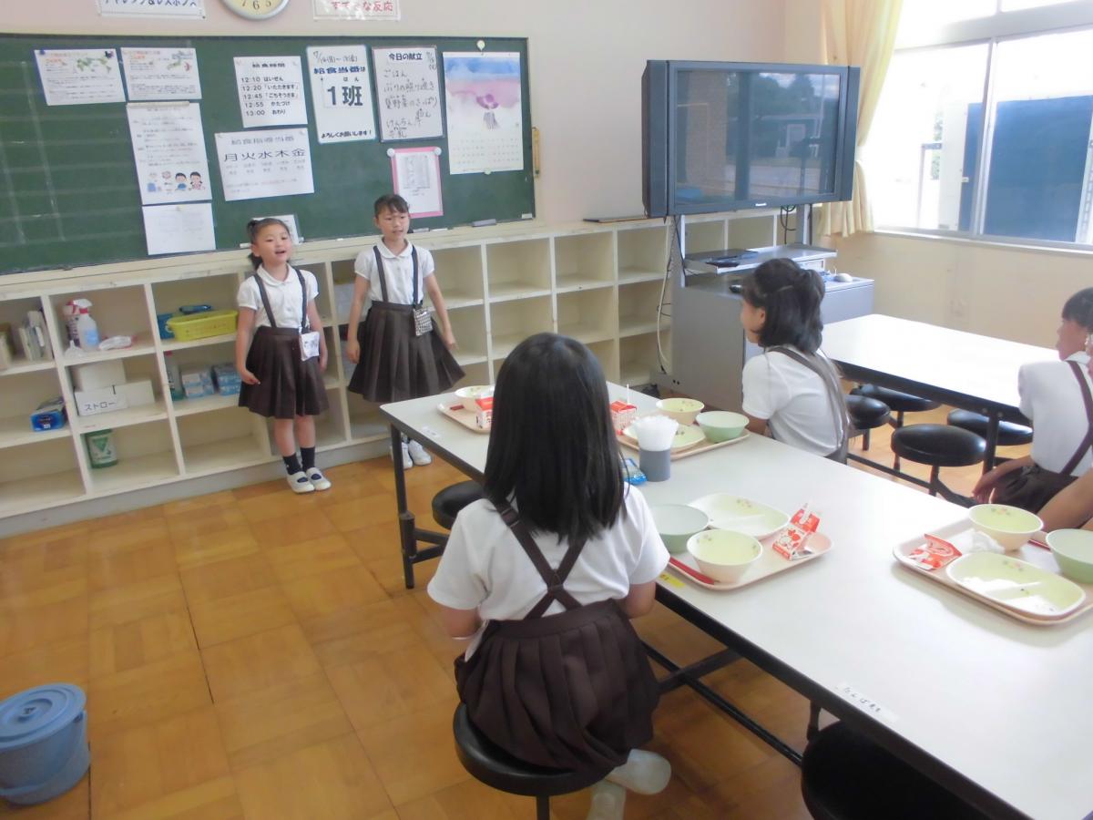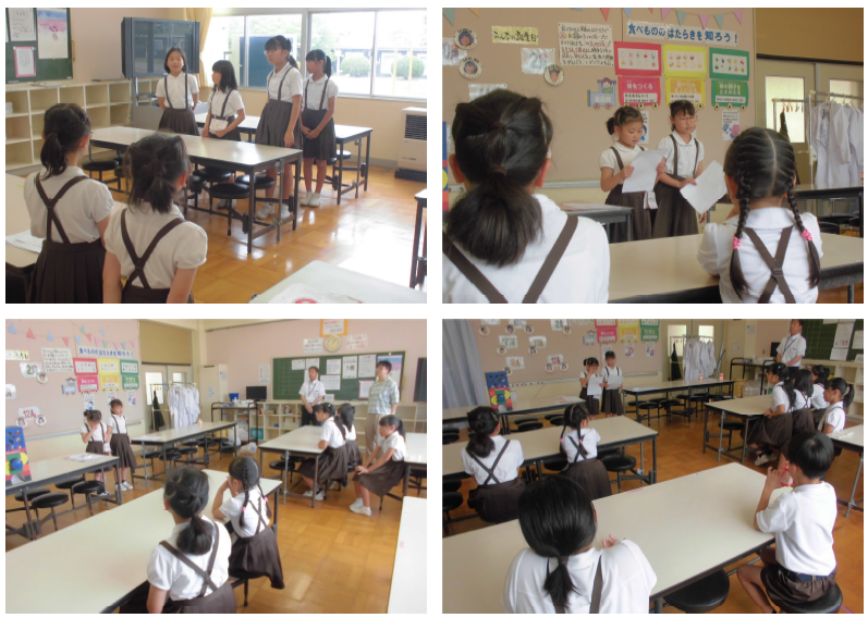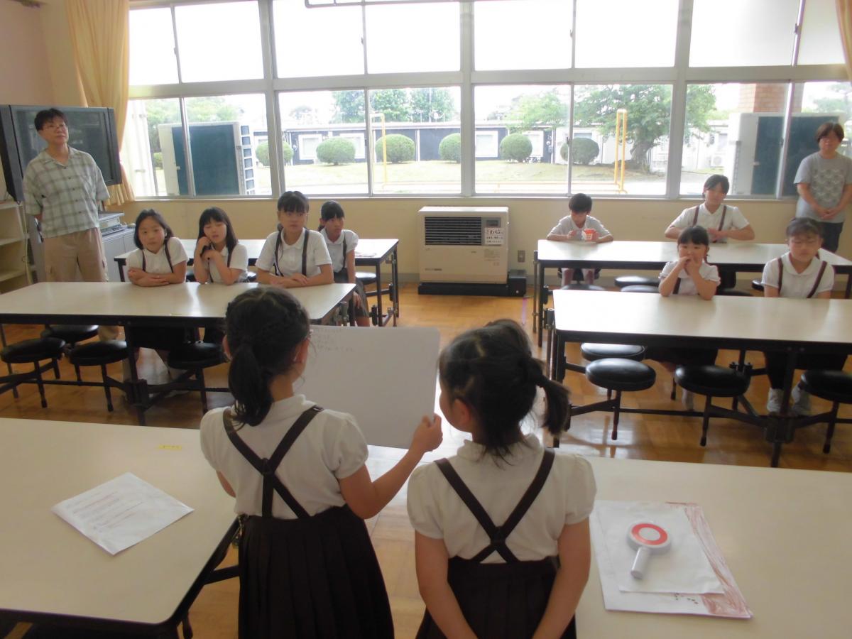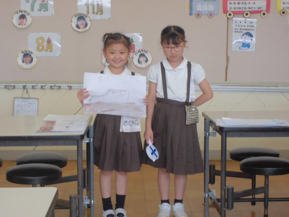 給食後、ランチルームで2年生の学年発表がありました。学校田でつかまえたカエルの成長を観察しまとめたことを発表してくれました。クイズも何問かあり、みんなで楽しみながら発表できました。堂々とはっきり話す2人の姿に成長も感じる時間となりました、花丸◎!
