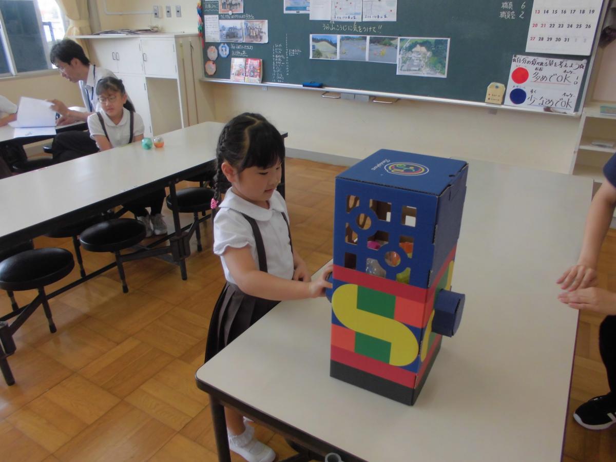 その後、震災機構様からいただいたカプセルトイ(ガチャ)をみんなに配付しました。市教委よりお借りしたガチャ機を使って分けました。みんな真剣にじゃんけんをして、1~3年生には3個、5年生には2個分けました。もらうと早速楽しそうに開封する姿も。震災機構様、素敵な贈り物をありがとうございました、感謝!