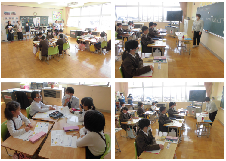 1年,3・4年生はそれぞれの場所で,体づくりをしていました。5年生は,ALTのジリアン先生と一緒に学ぶ初めての時間で,そわそわ・わくわくしていました。アルファベットでゲームをしたり,ハワイ出身のジリアン先生からの自己紹介を聞いたりと楽しそうに学んでいました。6年生は,5年生までの学習を振り返っていました。どの教室でもしっかり学ぶ姿が見られました。