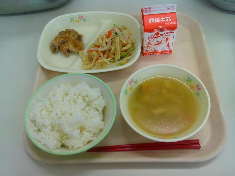 本日の給食は、ごはん・鶏肉の照り焼き・紅白なます・えのきと油揚げのみそ汁・牛乳でした。今月の給食目標は「感謝して食べよう」です。私たちが毎日口にしているお米や魚・肉・野菜・果物などは、もともとは動物や植物の命でした。命を無駄にしないよう、感謝の気持ちを持って残さずに食べるようにしたいですね。今日もおいしくいただきました。