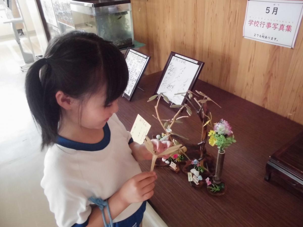 お昼休みには、昨日届いた【復興トンボ】に興味を持つ児童も。素敵な贈り物に囲まれ、児童は幸せそうに見えました。