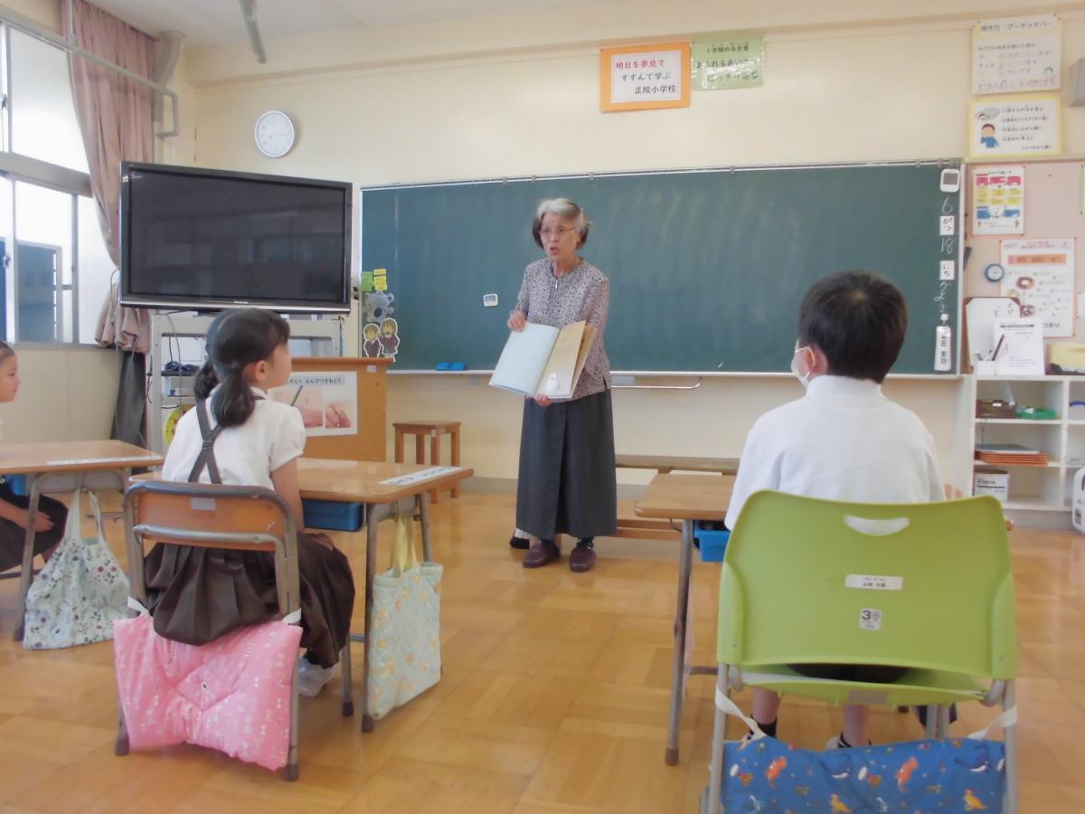 19日(水)の朝は、月に1度の読み聞かせでした。今日も良い天気の中、3名の皆さんをお迎えできました。