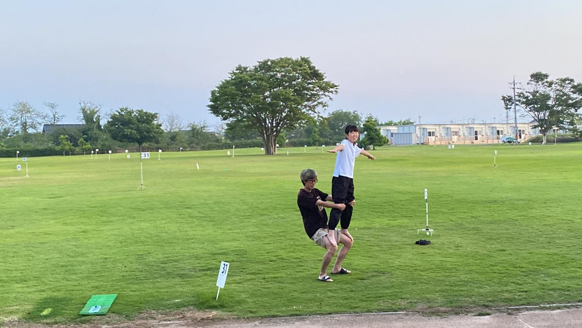 広いゲートボール場で、お父さんと組体操!いいですねぇ!おそらくお家からここまでお話したり、手をつなぎながら歩いてきたのでしょうか?想像するだけで、お父さんのたくさんの愛を感じる写真です。素敵な写真をありがとうございました!