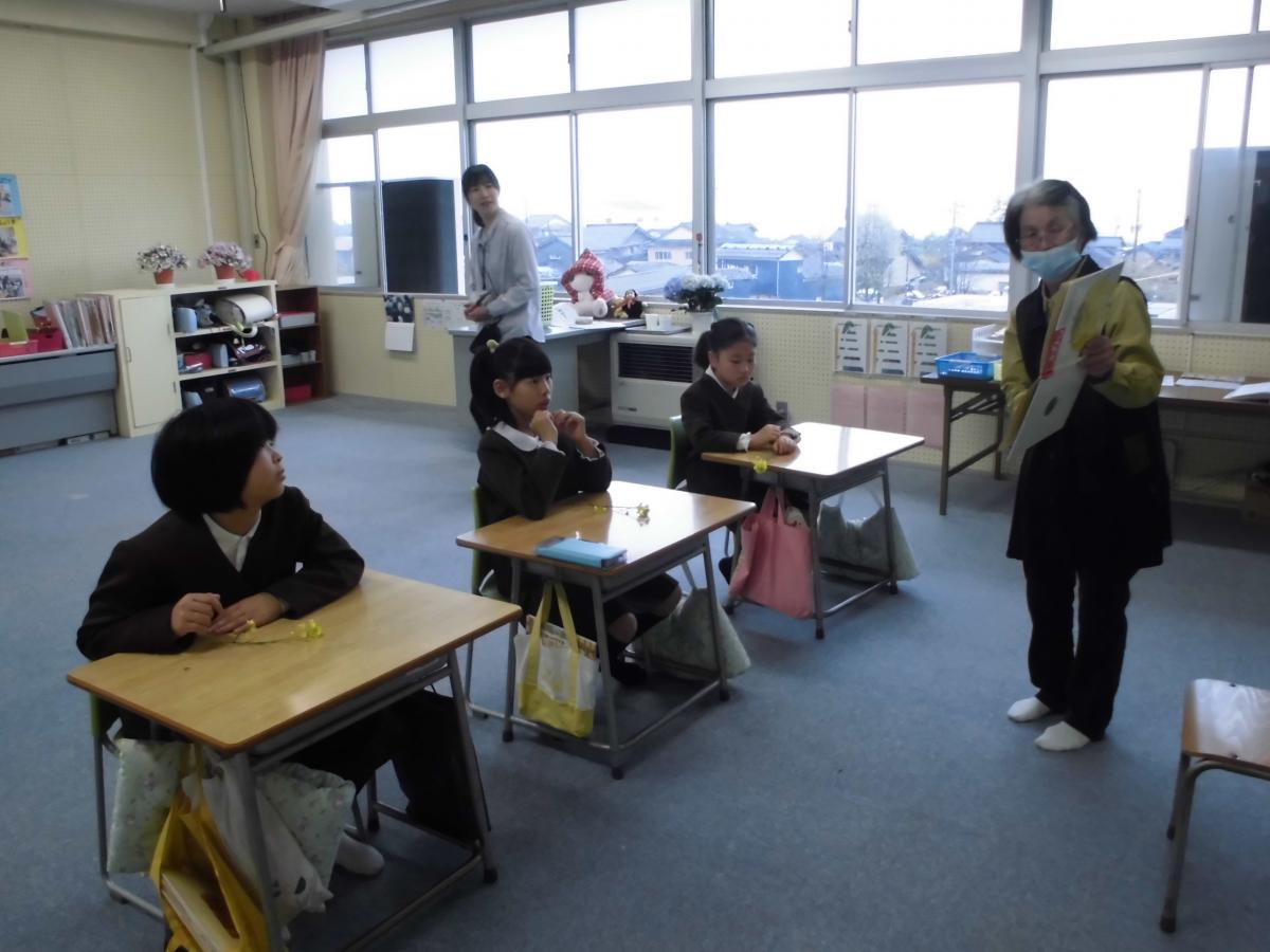 お昼休みは、2週間に1度来校する学校司書さんの読み聞かせでした。高学年向きの本だよって呼びかけましたが、給食後全員が図書室に集って聞き入る姿がありました。14人皆兄弟姉妹のように行動する姿がとても微笑ましかったです。