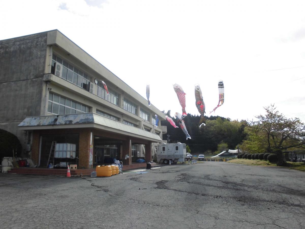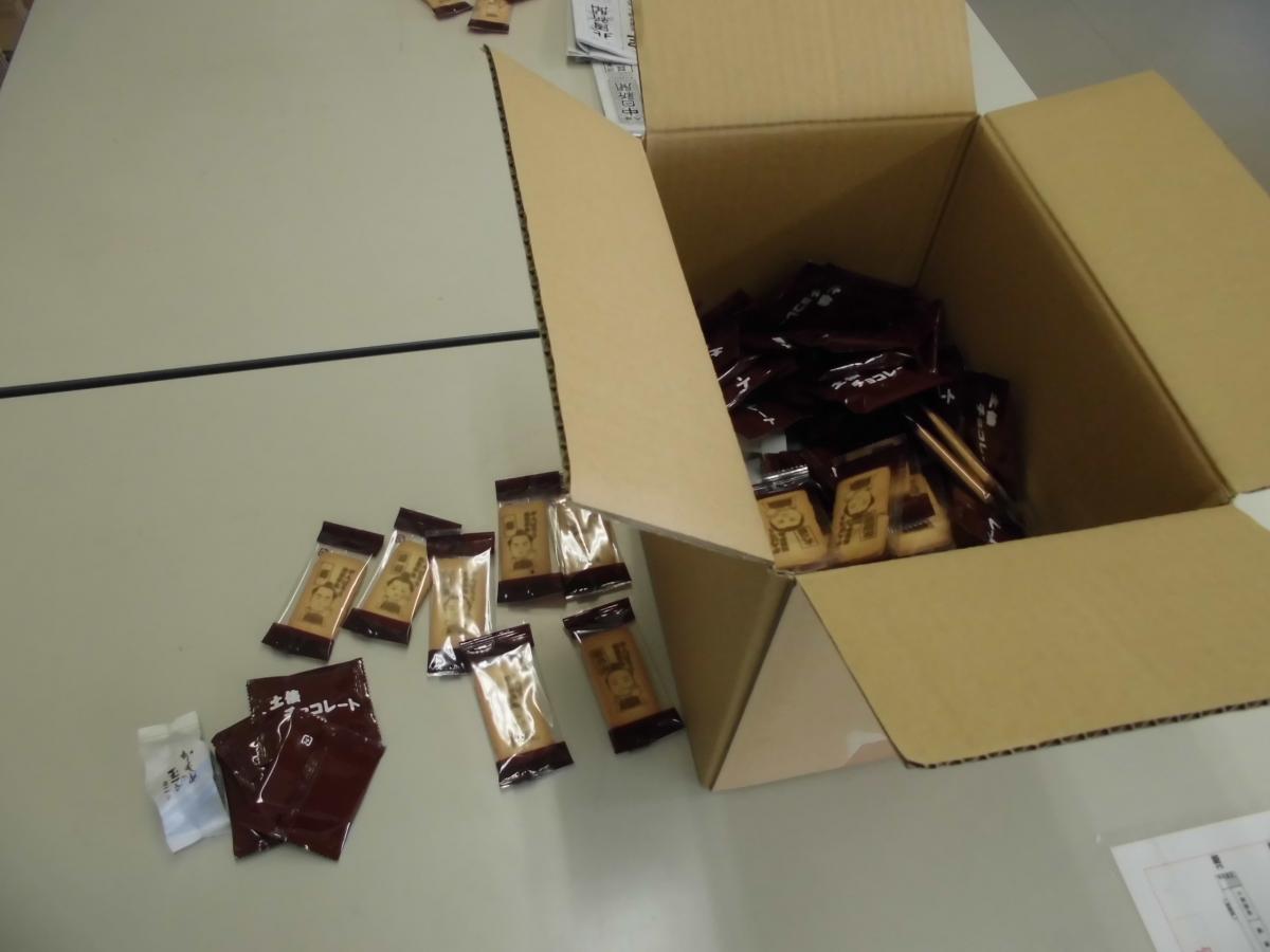 昨日9日(日)、本校グラウンドの仮設住宅・集会所で炊き出しがありました。チーム愛媛の皆さんの協力のおかげです。その中に、愛媛県教育研究協議会伊予支部から4名の教職員の方もおいでて、本校にポンジュースや歯ブラシセット、お菓子等、たくさんの素敵な贈り物を持ってきて下さいました。